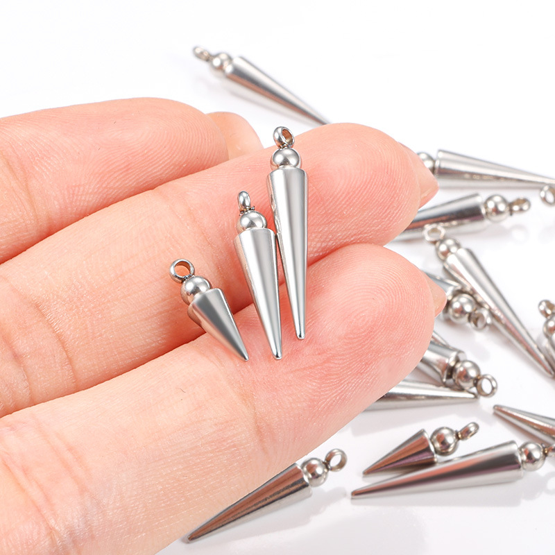 1:Steel color welding bead cone pendant 12mm2:Steel color welding bead tapered pendant 18mm3:Steel color welding bead cone pendant 22mm4:Steel color beaded tapered pendant 18mm5:Steel color beaded tapered pendant 22mm6:Steel color welding ring tapered pendant 6x9mm7:Steel color welding ring tapered pendant 7x14mm8:Steel color welding ring tapered pendant 5.5x18mm9:Steel color large awl pendant 6.5x46mm10:Steel color large awl pendant 5x38mm11:Vacuum electroplated 18k gold tapered pendant 6x9mm12:Vacuum electroplated 18k gold tapered pendant 7x14mm13:Vacuum electroplated 18k gold tapered pendant 5.5x18mm