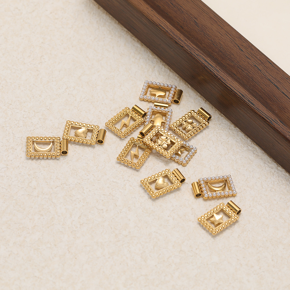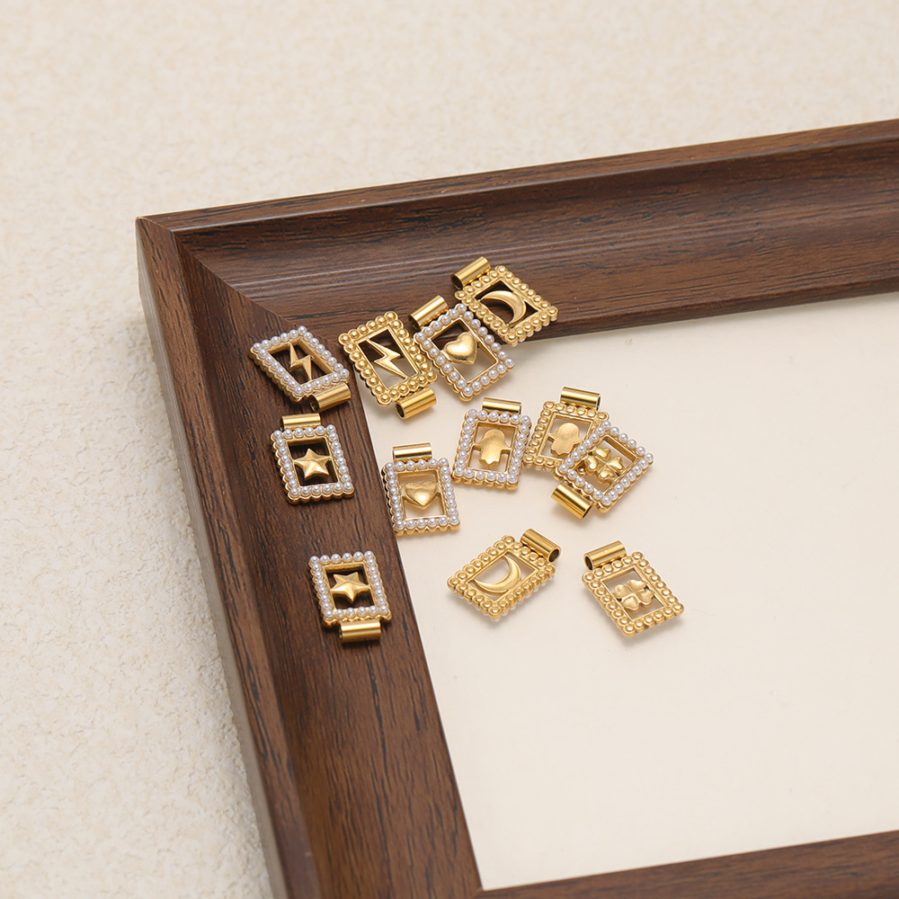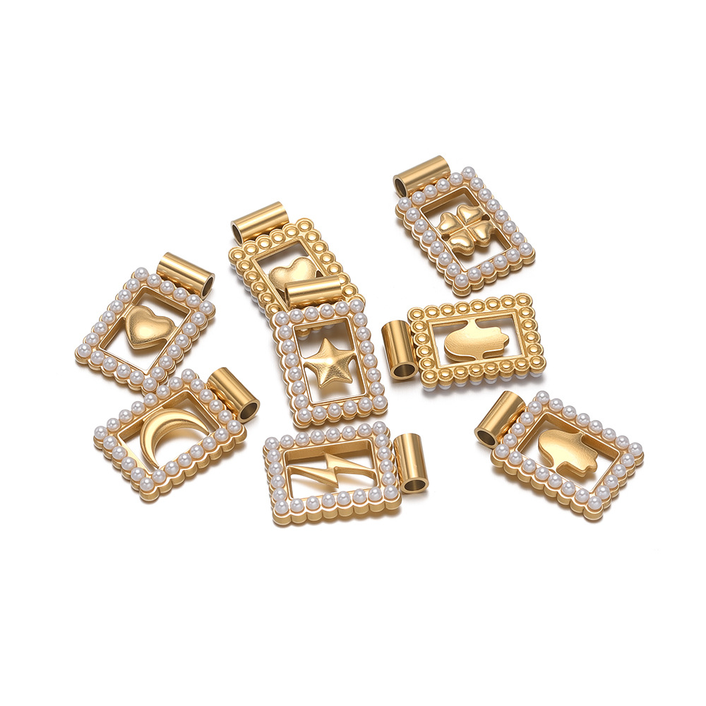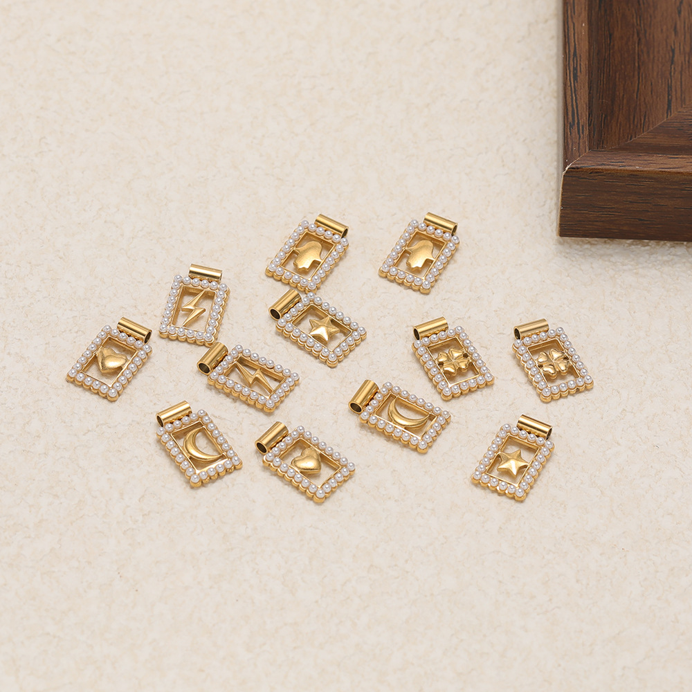 Stainless Steel korut Riipukset, 304 Stainless Steel, kanssa Muovi Pearl, Suorakulmio, kullan väri kullattu, tee-se-itse & eri tyylejä valinta & ontto, 10x13mm, 10PC/laukku, Myymät laukku