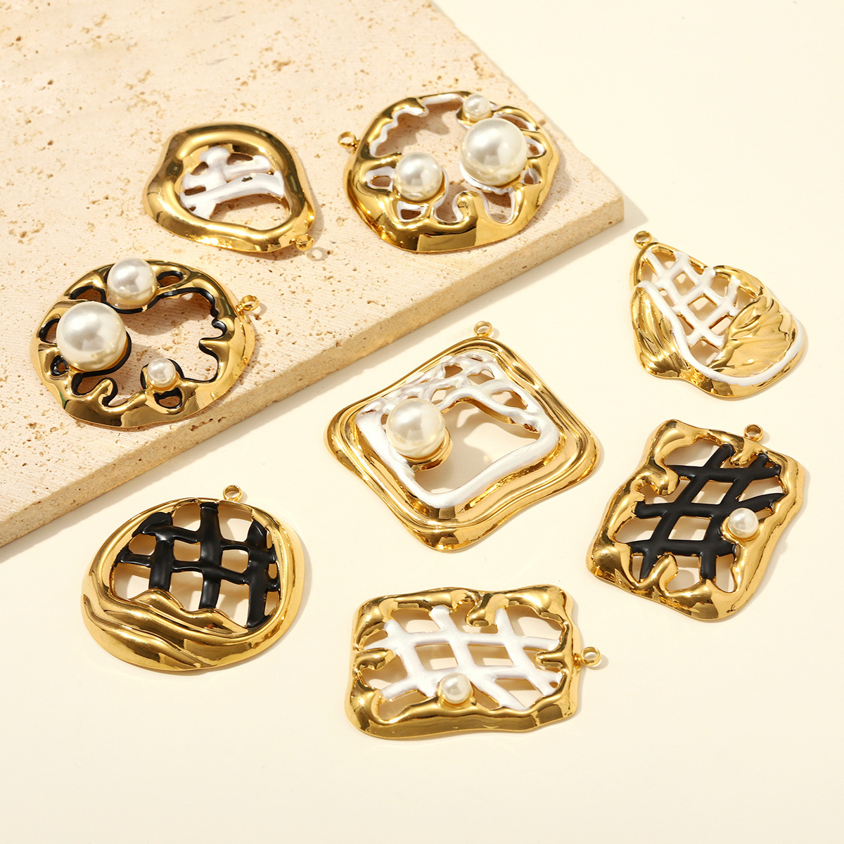 Stainless Steel korut Riipukset, 304 Stainless Steel, kanssa ABS-muovista helmi, kullan väri kullattu, tee-se-itse & eri tyylejä valinta & emali & ontto, 3PC/laukku, Myymät laukku