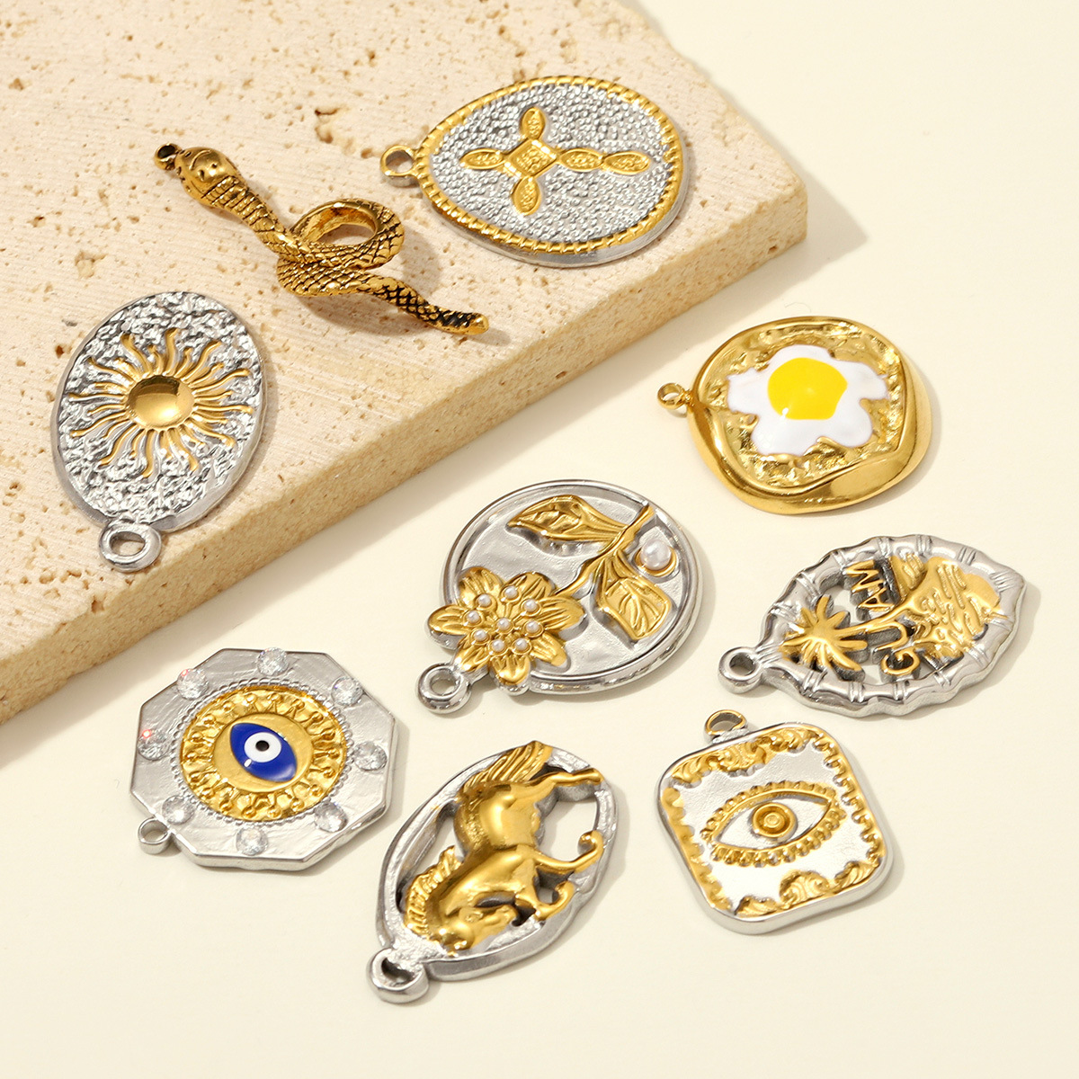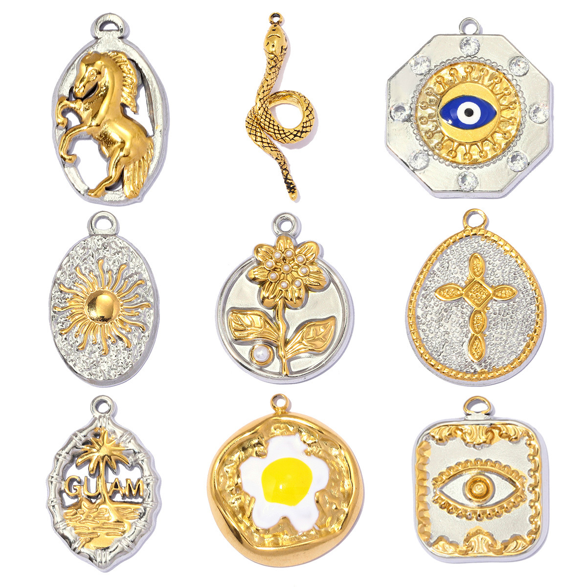 Stainless Steel korut Riipukset, 304 Stainless Steel, kullan väri kullattu, tee-se-itse & emali, enemmän värejä valinta, 3PC/laukku, Myymät laukku
