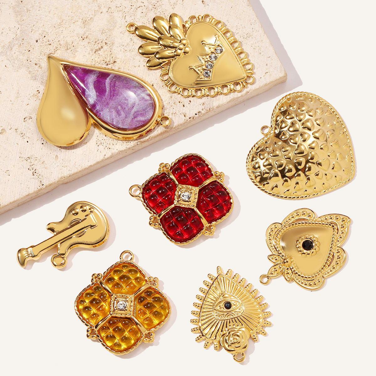 Stainless Steel korut Riipukset, 304 Stainless Steel, kanssa Hartsi, kullan väri kullattu, tee-se-itse & eri tyylejä valinta & tekojalokivi, 3PC/laukku, Myymät laukku