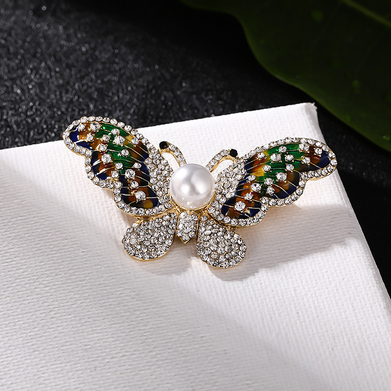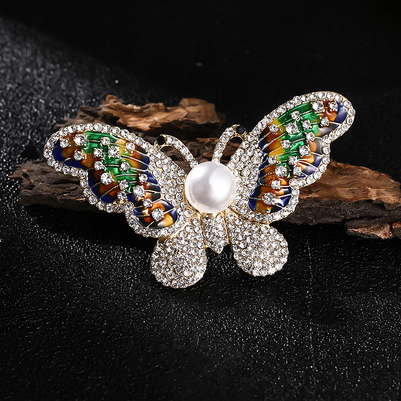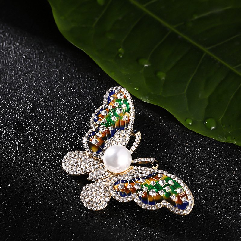 Strassi rintaneula, Sinkkiseos, kanssa Muovi Pearl, Perhonen, päällystetty, naiselle & emali & tekojalokivi, Myymät PC