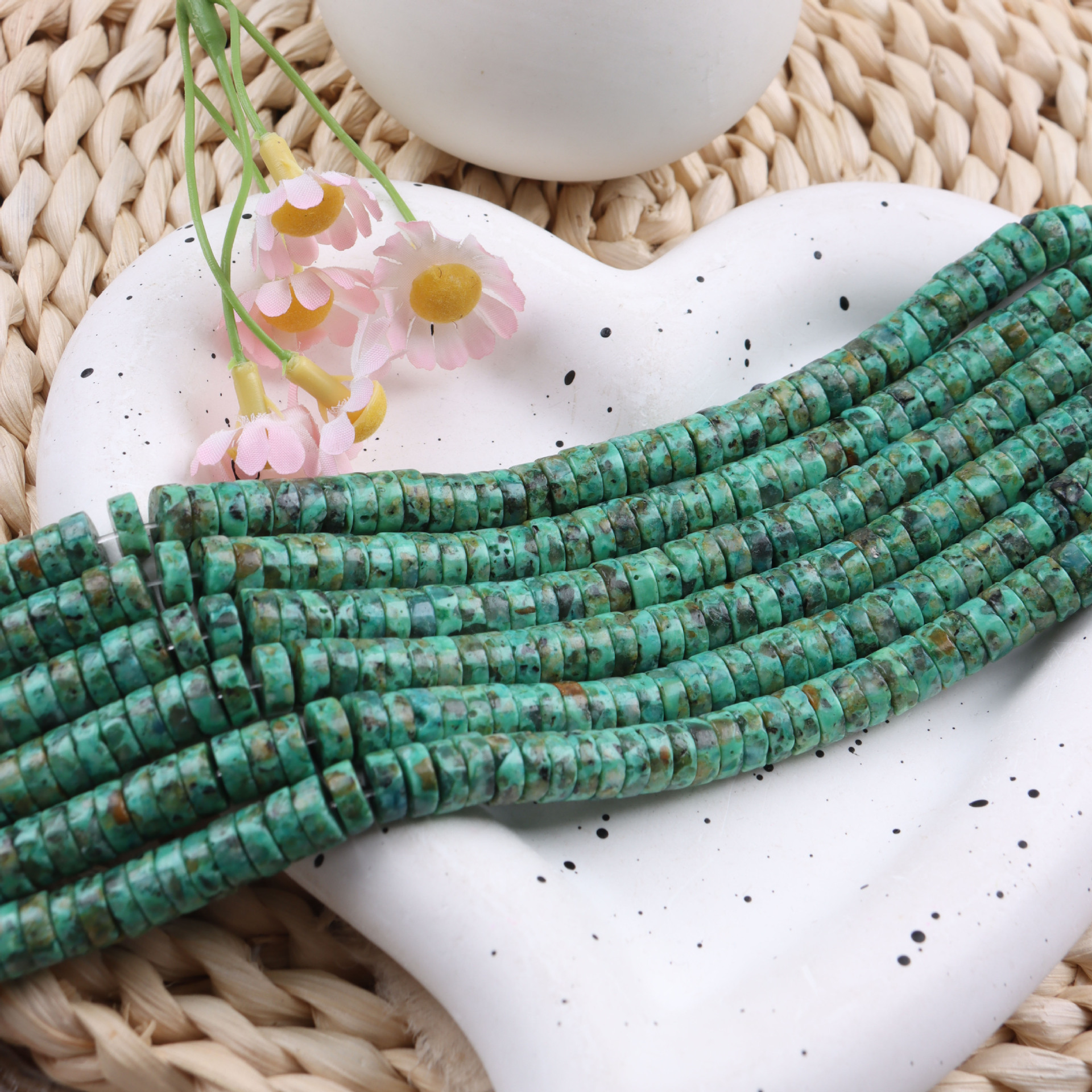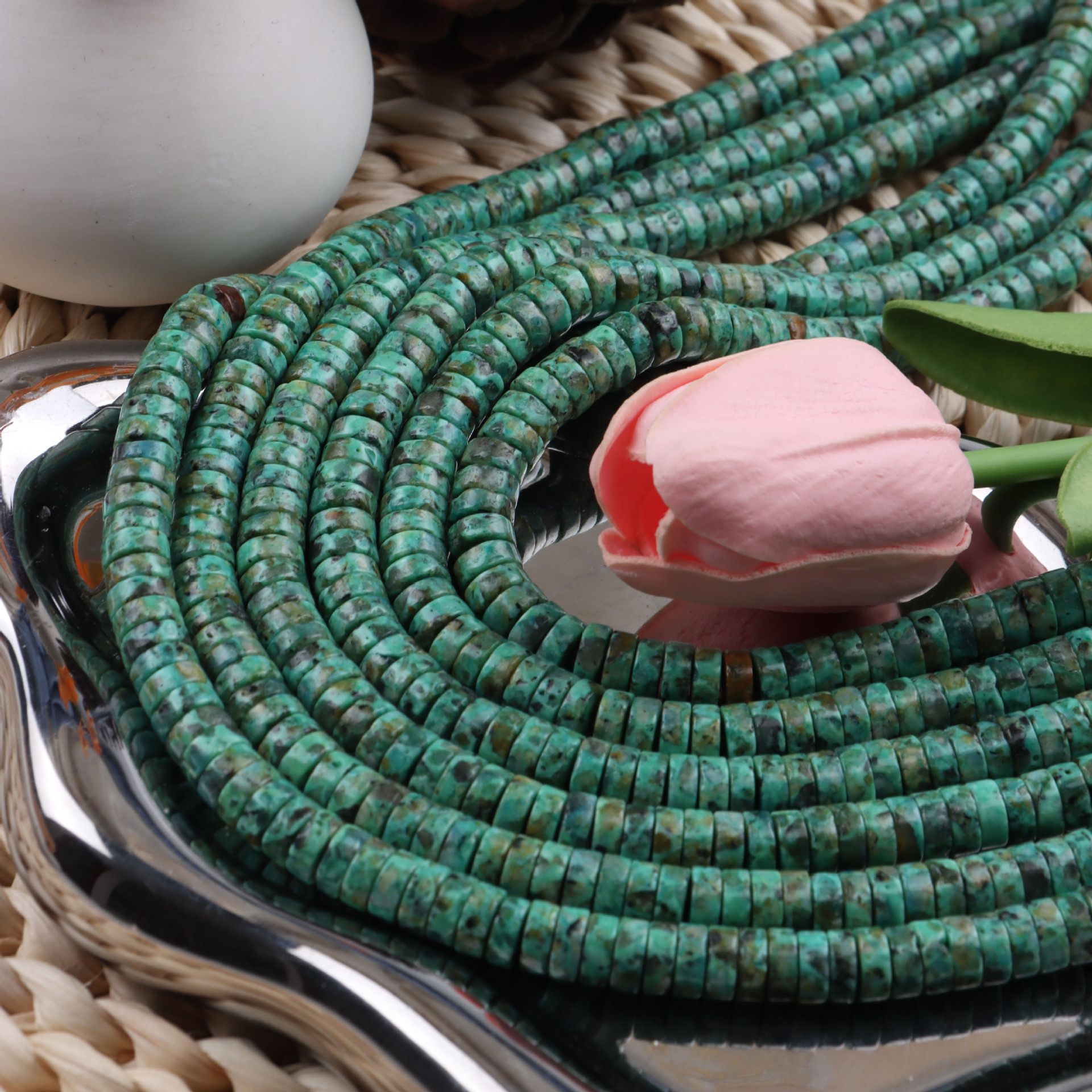 Turkoosi Helmet, Afrikkalainen turkoosi, tee-se-itse, sekavärit, 8mm, Myyty Per N. 36 cm Strand