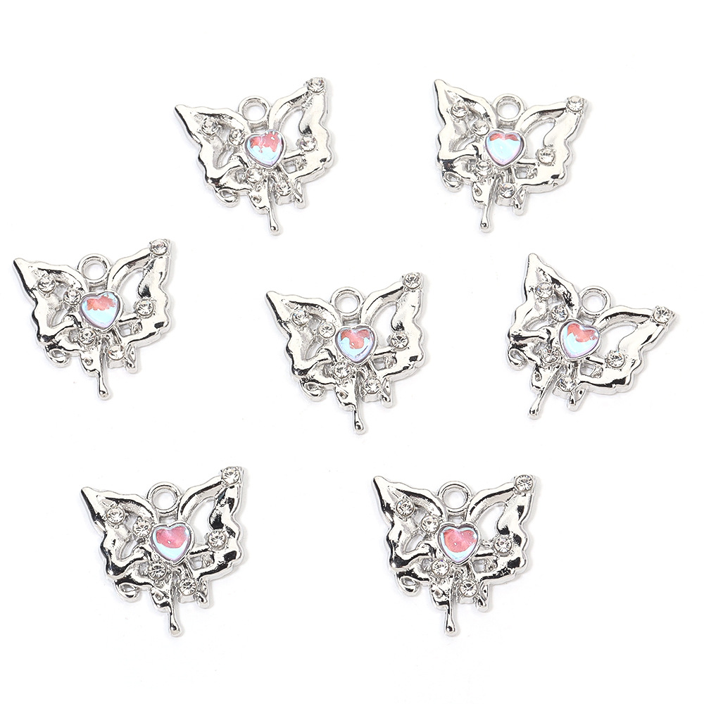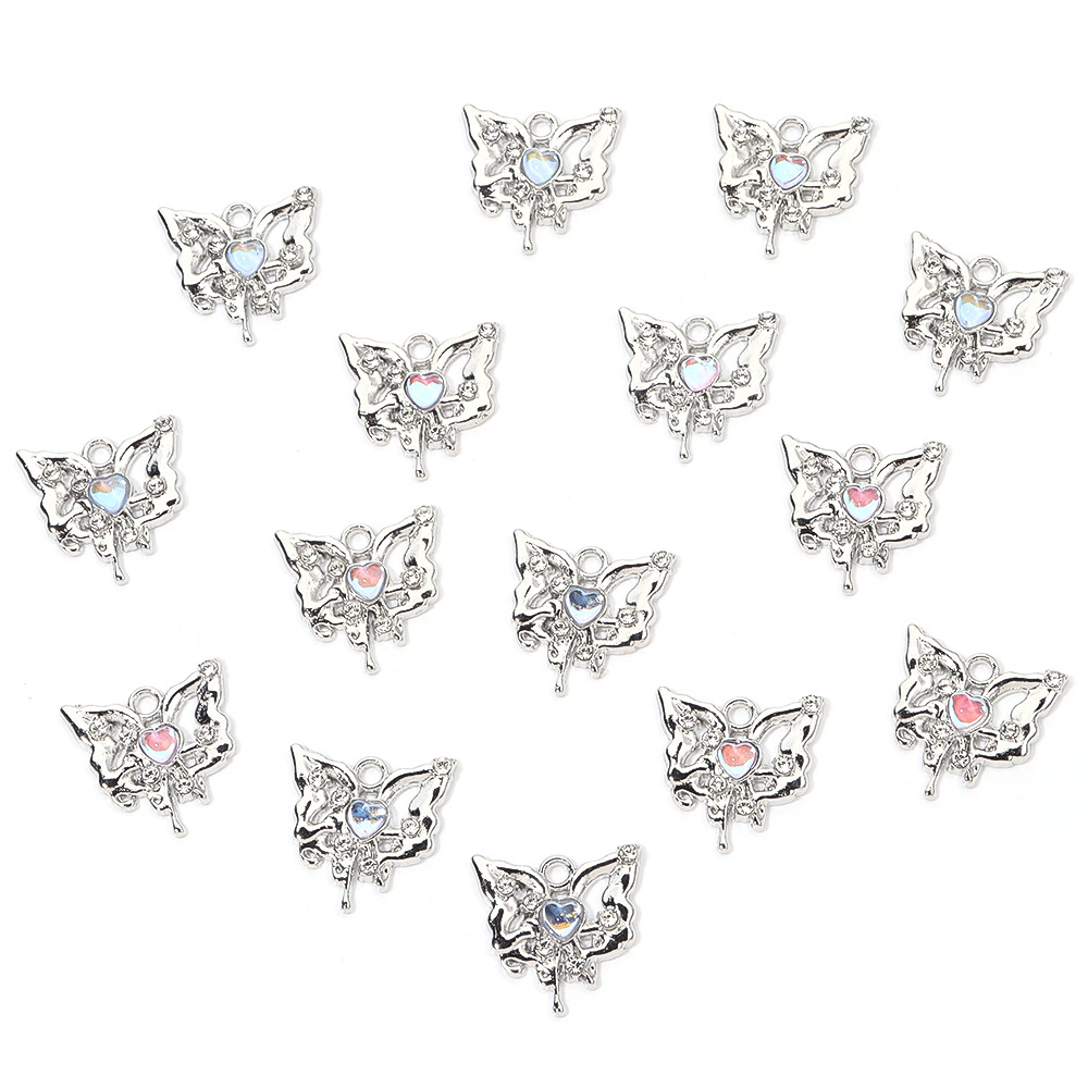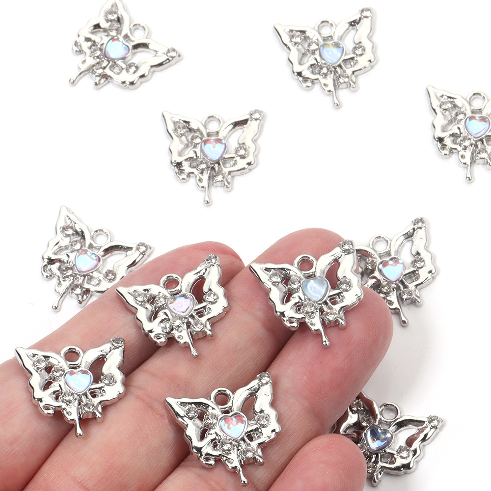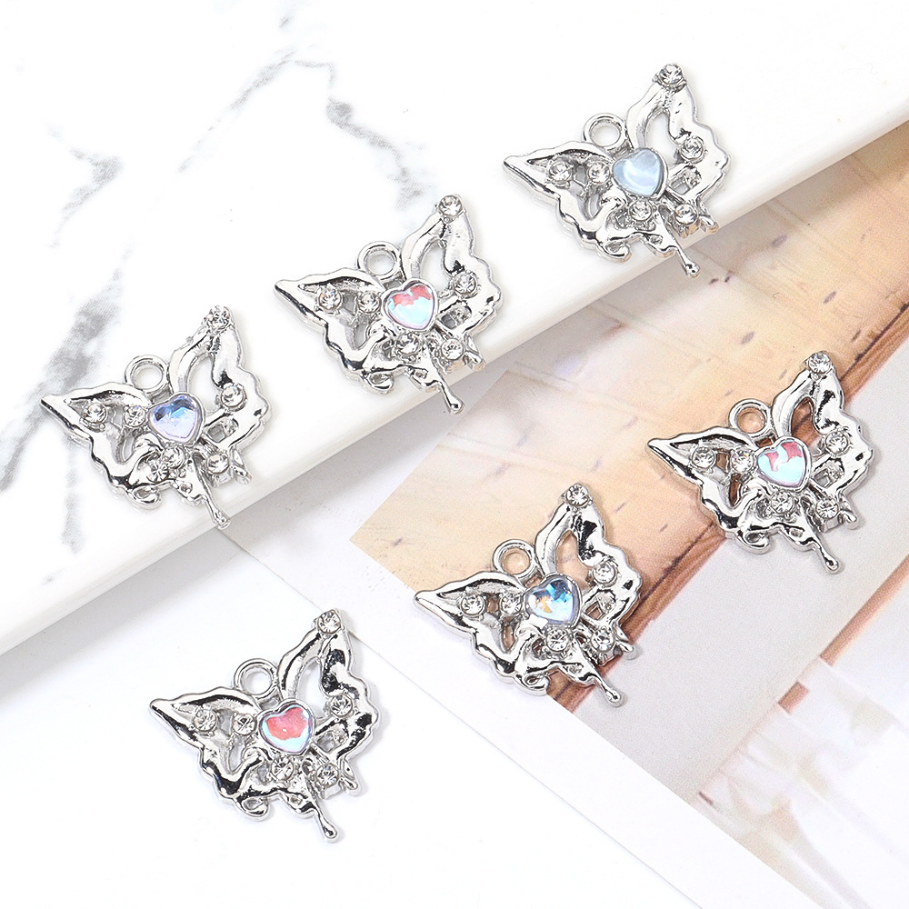 Sinkkiseos tekojalokivi riipukset, Perhonen, hopea päällystetty, tee-se-itse, enemmän värejä valinta, nikkeli, lyijy ja kadmium vapaa, 18x18mm, 100PC/laukku, Myymät laukku
