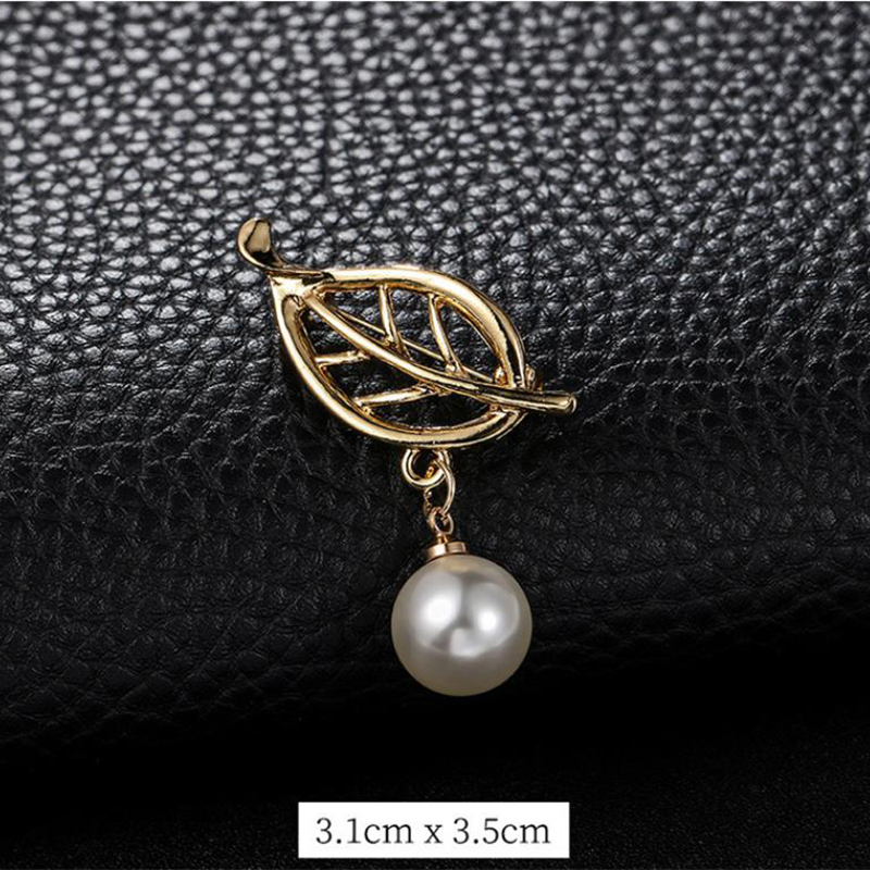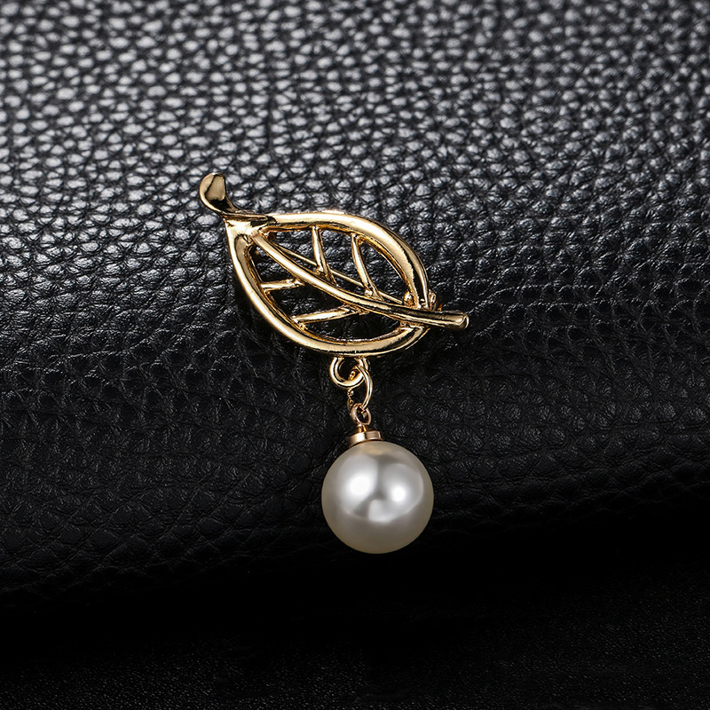Sinkkiseos Rintaneula, kanssa Muovi Pearl, Lehtiä, kullan väri kullattu, naiselle & ontto, 31x35mm, Myymät PC