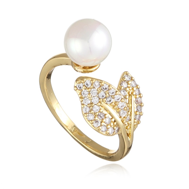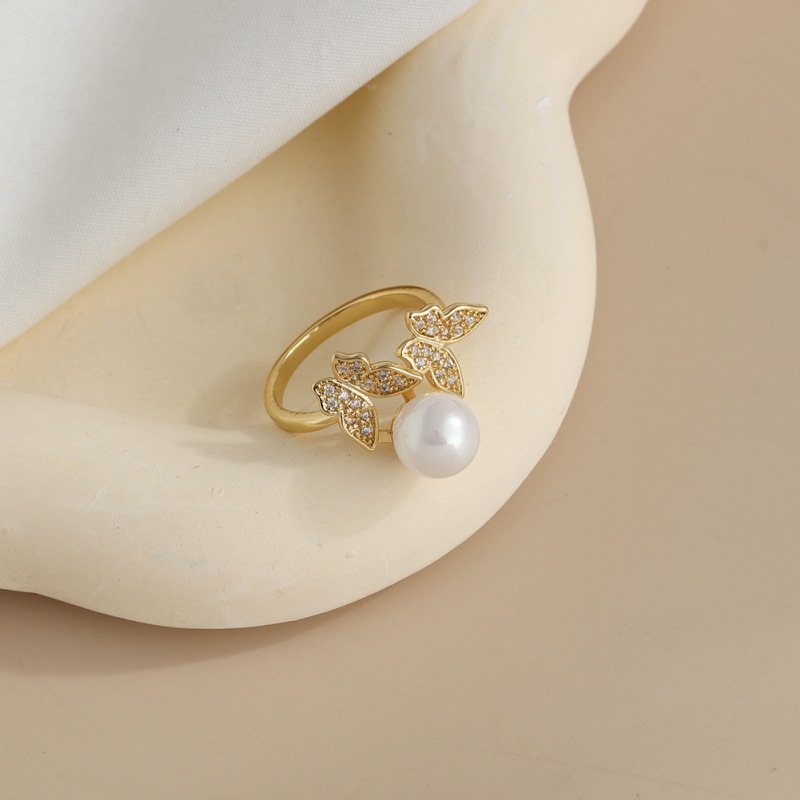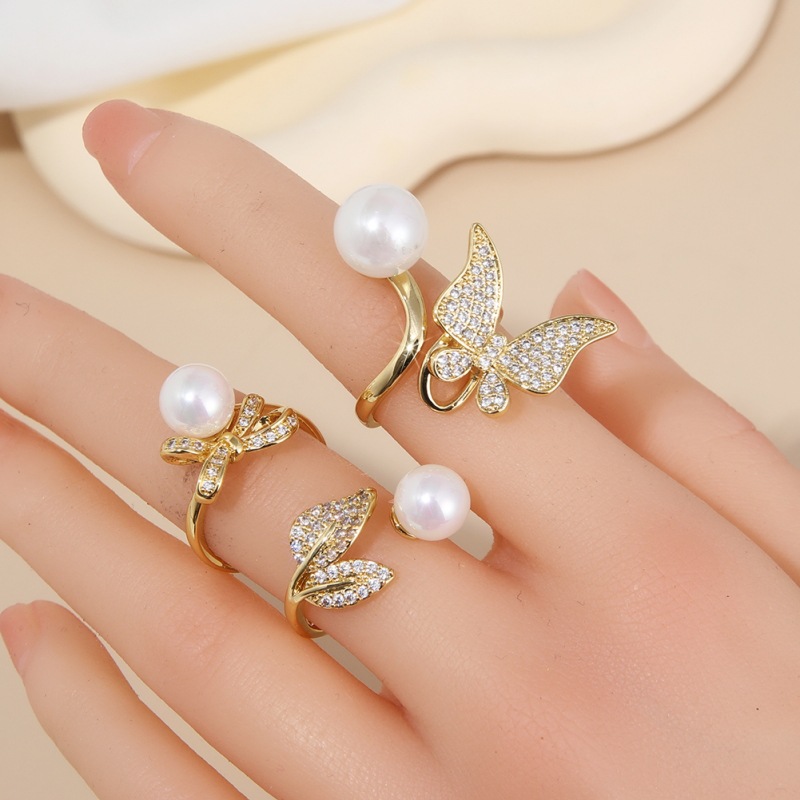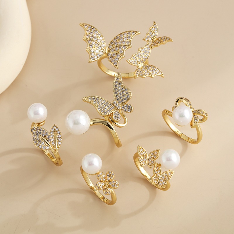 Messinki Ranneke sormen sormus, kanssa Muovi Pearl, Perhonen, kullan väri kullattu, eri tyylejä valinta & Micro Pave kuutiometriä zirkonia & naiselle, Koko:6-8, Myymät PC