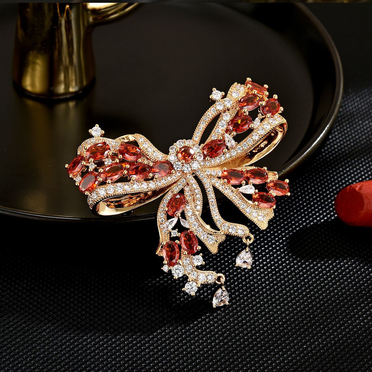 Messinki Rintaneula, päällystetty, Micro Pave kuutiometriä zirkonia & naiselle, kultainen, 50x54mm, Myymät PC
