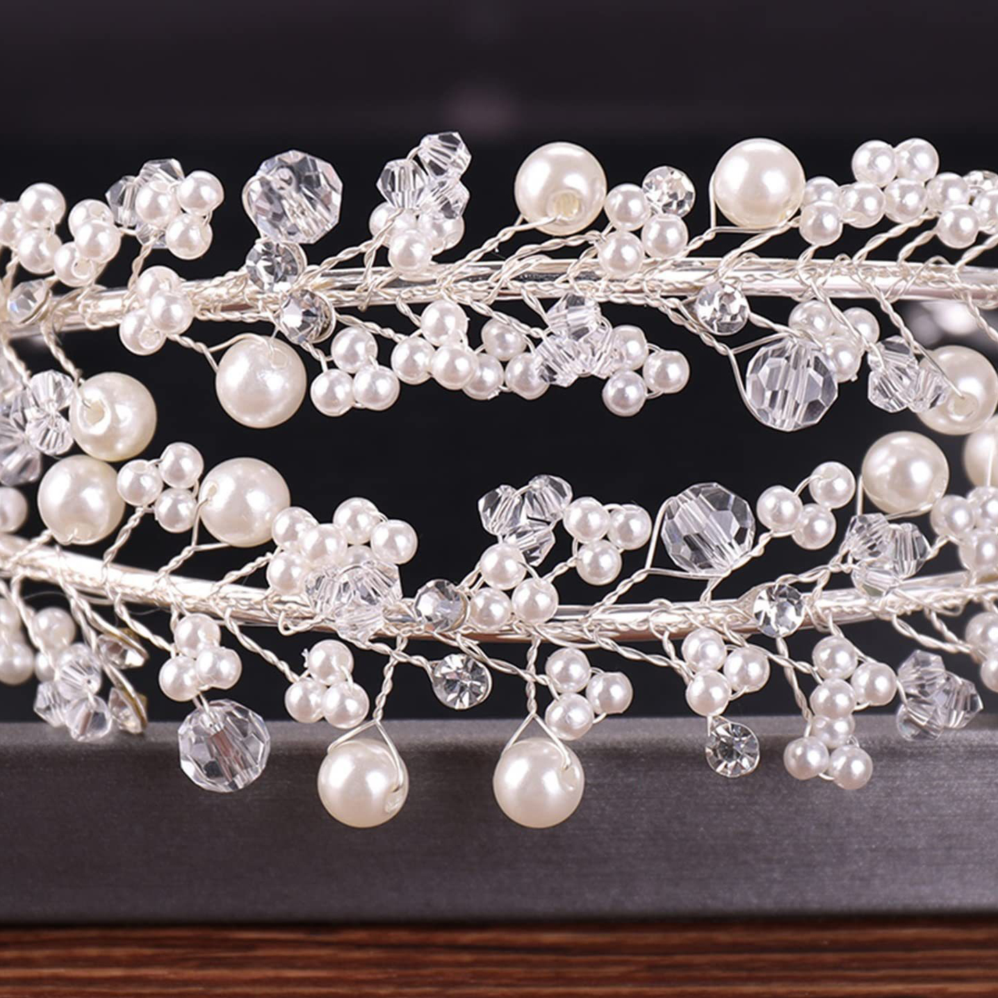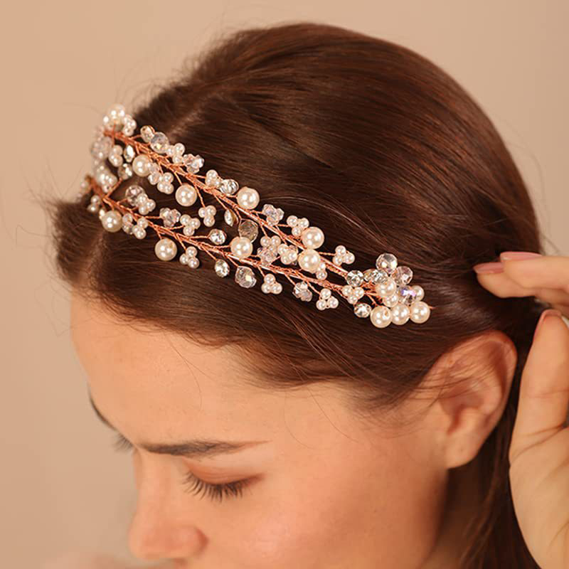 Muovi Pearl Hair Band, kanssa messinkilanka & Kristalli, käsintehty, Kaksinkertainen kerros & muoti korut & naiselle, enemmän värejä valinta, Diameter :18cm., Myymät PC