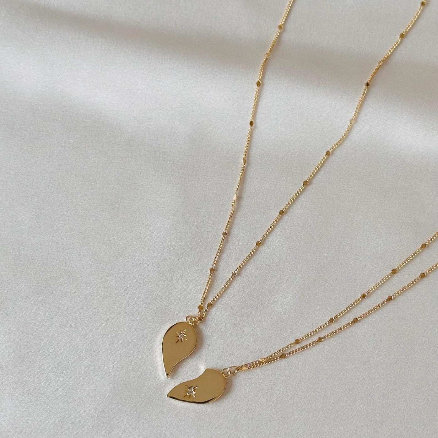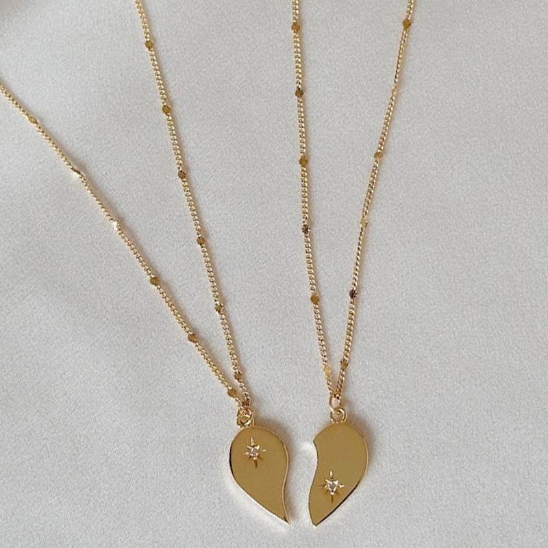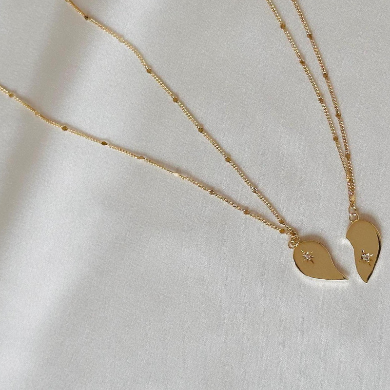 Acier inoxydable 304 Collier puzzle, coeur, Placage de couleur d'or, unisexe & avec strass, Longueur Environ 16-20 pouce, Vendu par PC