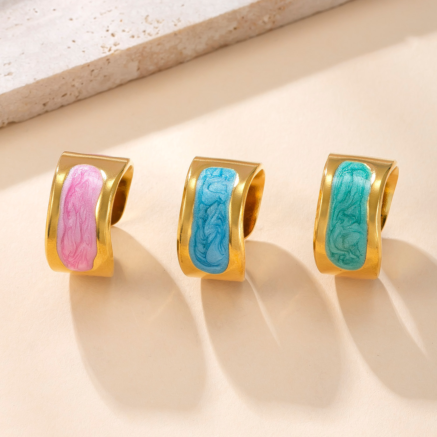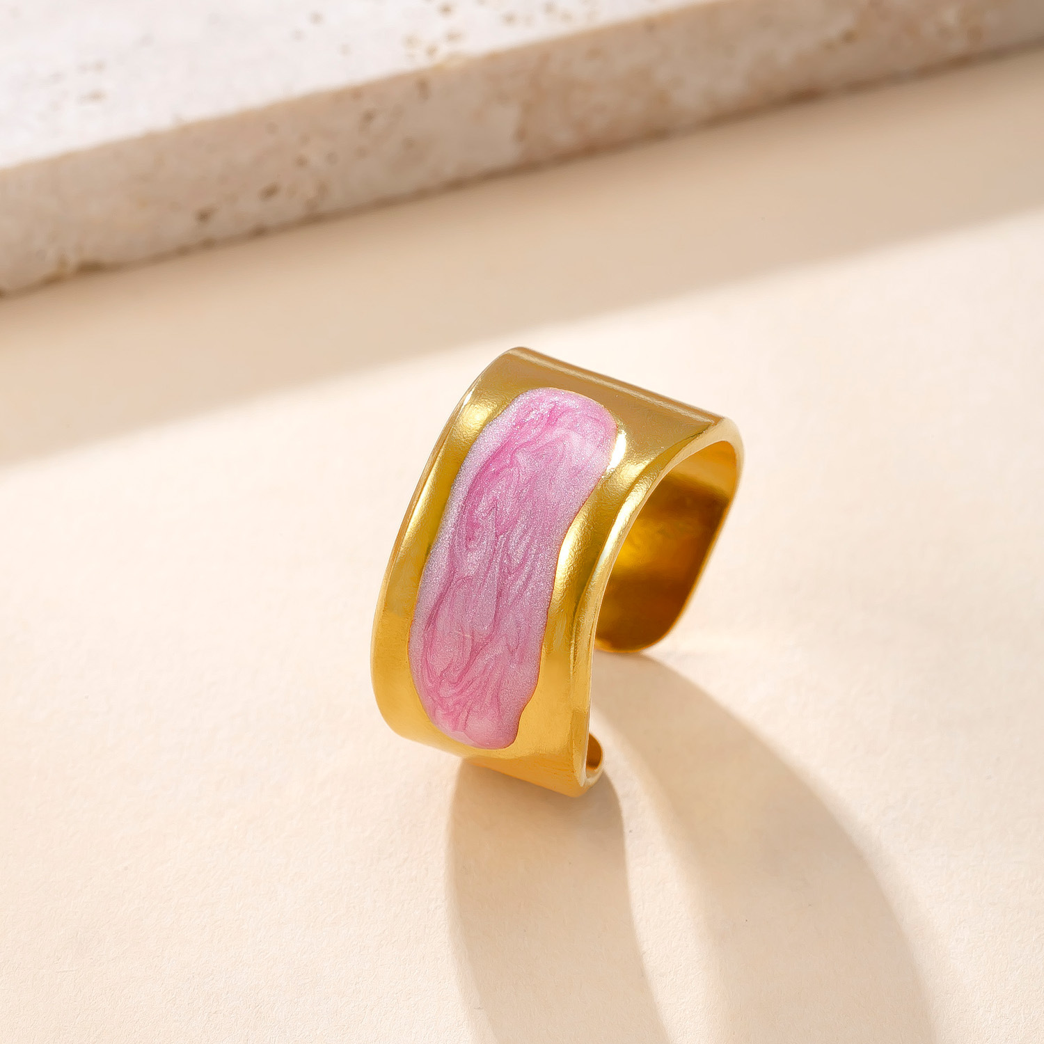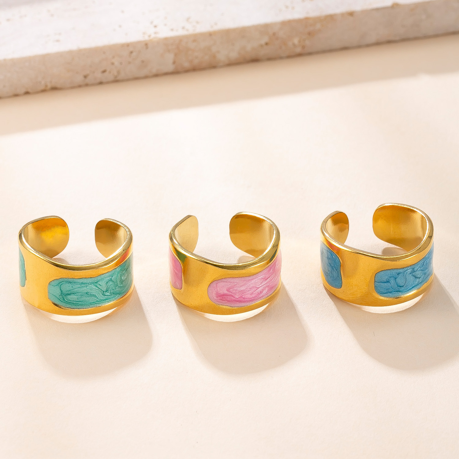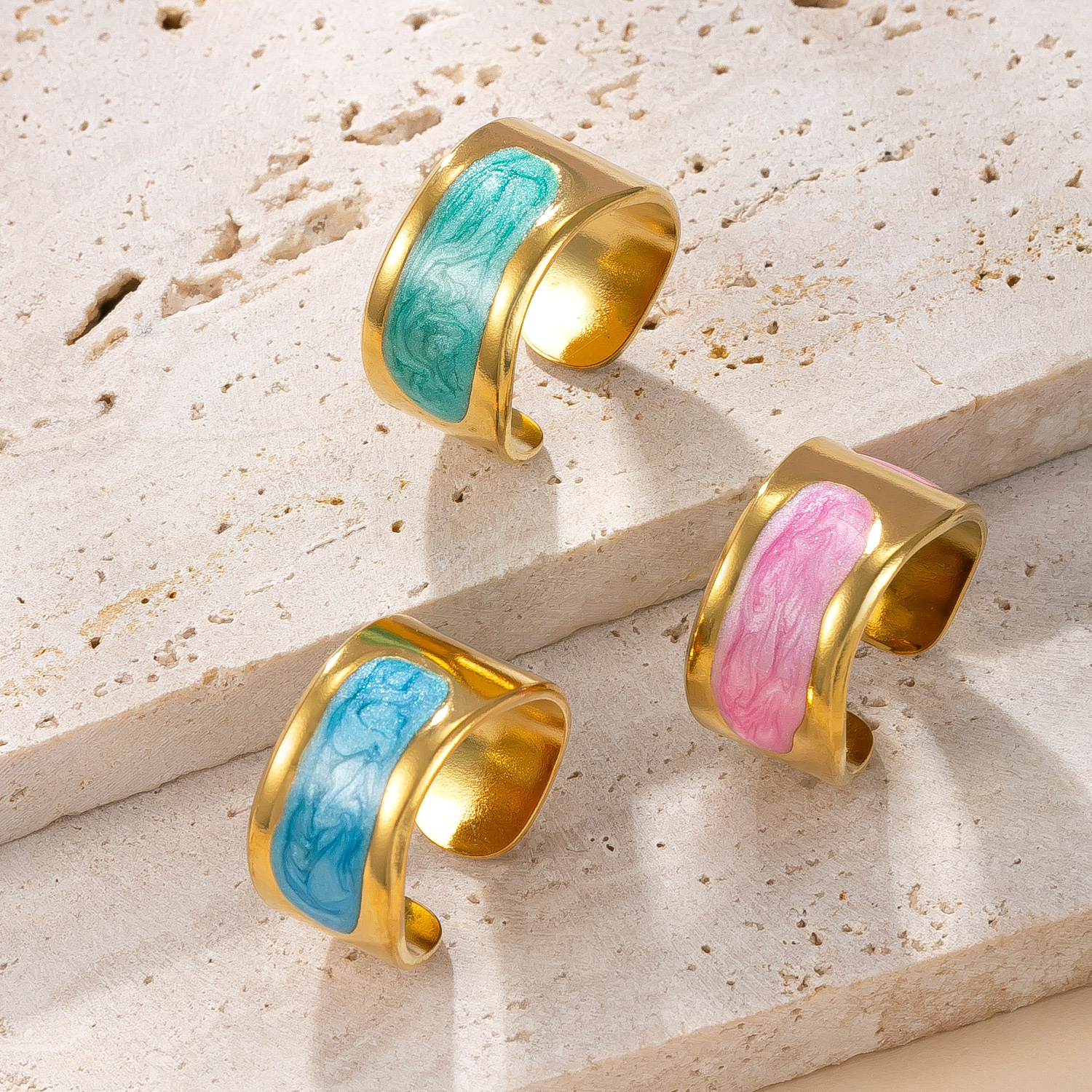 Acier inoxydable 304 Cuff Bague, Placage de couleur d'or, bijoux de mode & pour femme & émail, plus de couleurs à choisir, Vendu par PC