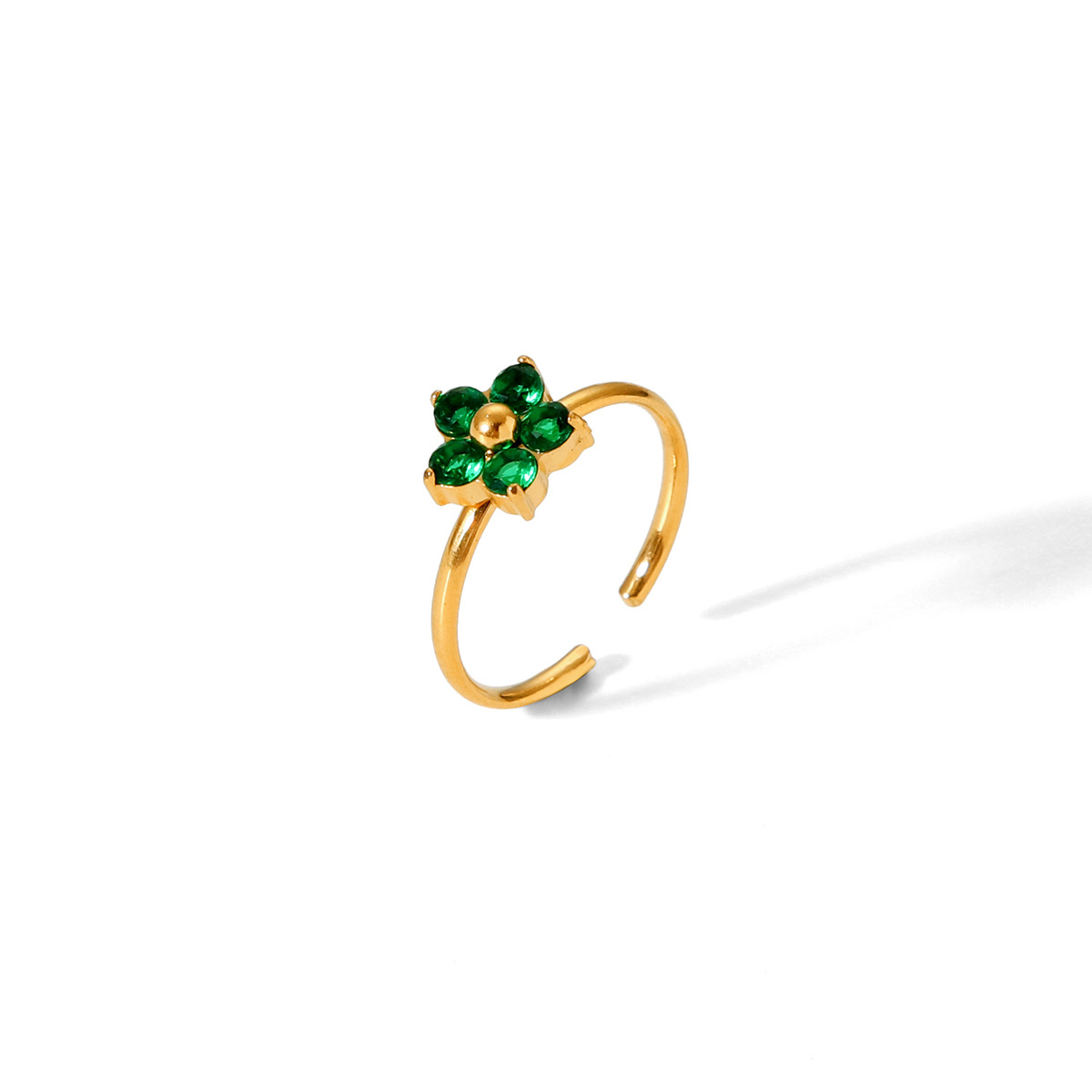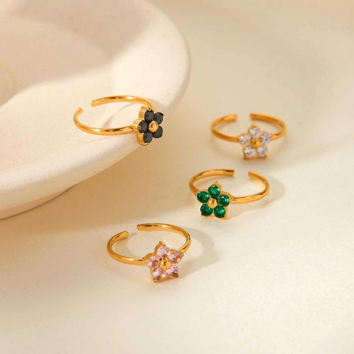 Acier inoxydable 304 Cuff Bague, fleur, Placage de couleur d'or, pavé de micro zircon & pour femme, plus de couleurs à choisir, Vendu par PC