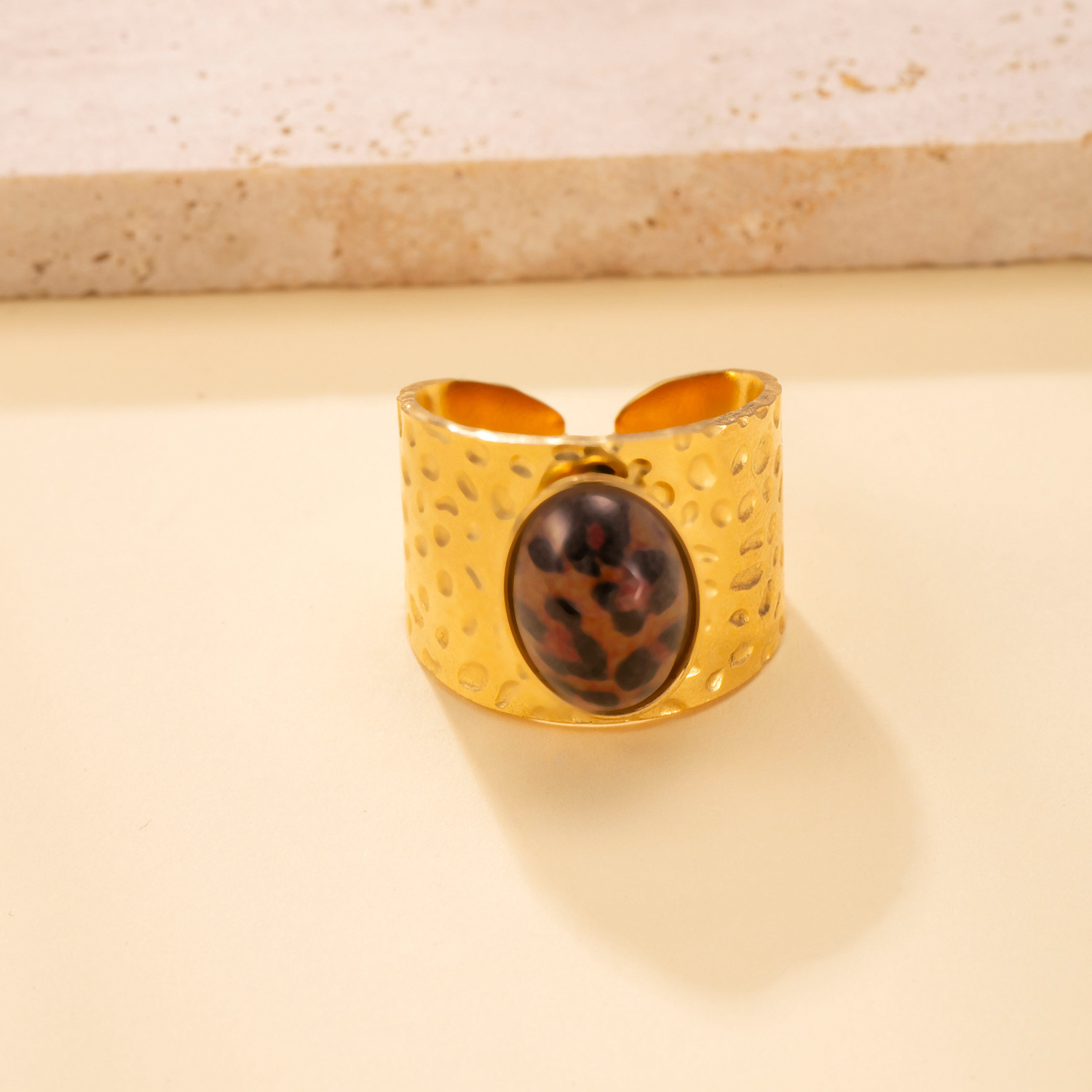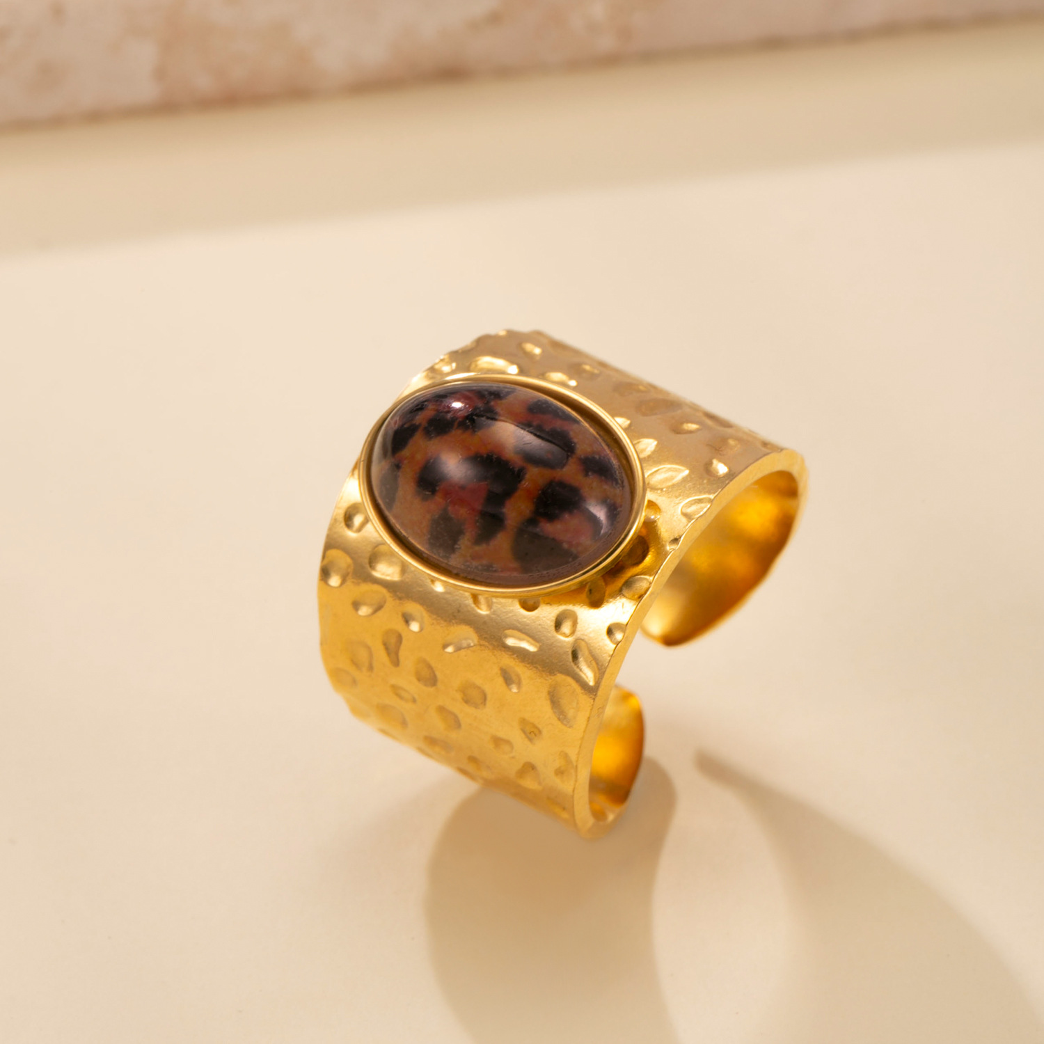 Acier inoxydable 304 Cuff Bague, avec Pierre naturelle, Placage de couleur d'or, Vintage & unisexe, Vendu par PC