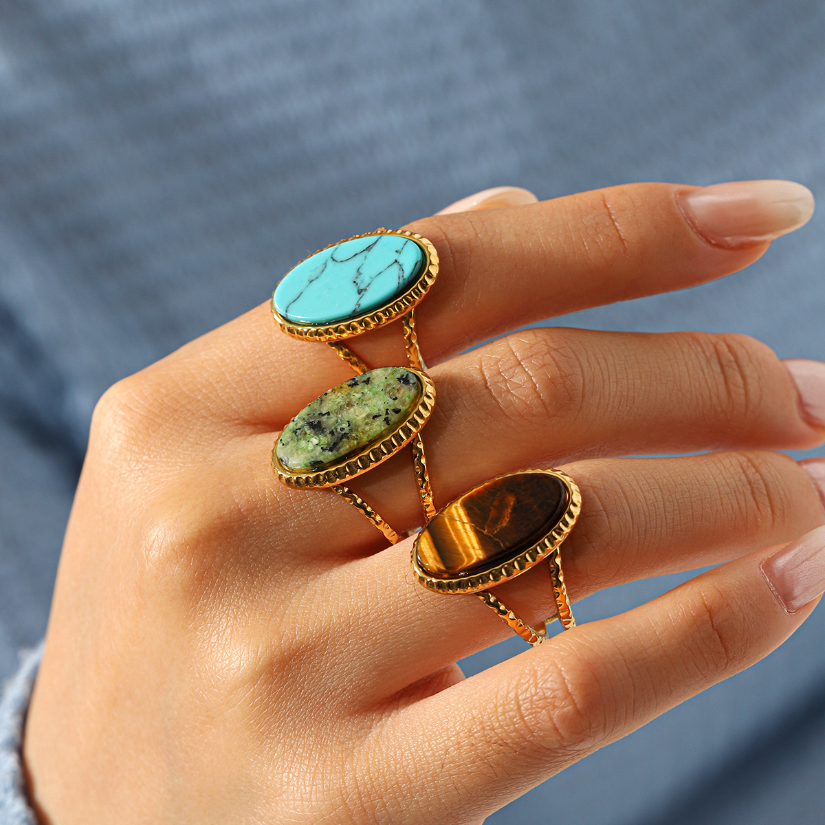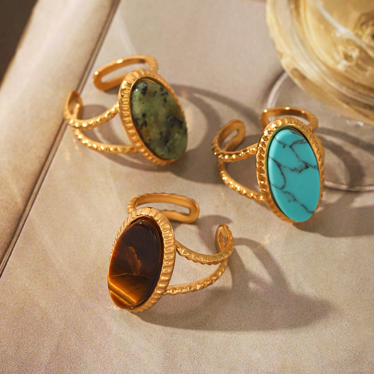 Bague pierre précieuse, Acier inoxydable 304, avec pierre gemme, Placage de couleur d'or, Réglable & pour femme, plus de couleurs à choisir, Vendu par PC