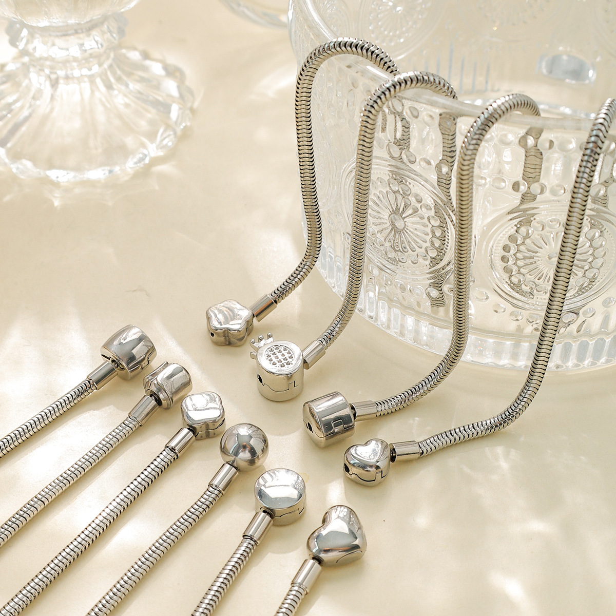 Acier inoxydable 304 European Bracelet cordon, Placage de couleur argentée, bijoux de mode, argent, 10PC/sac, Vendu par sac