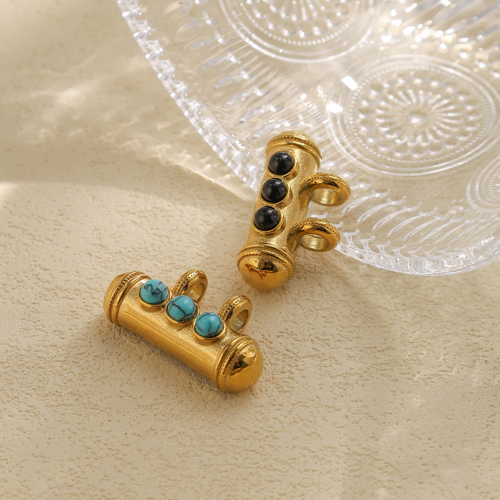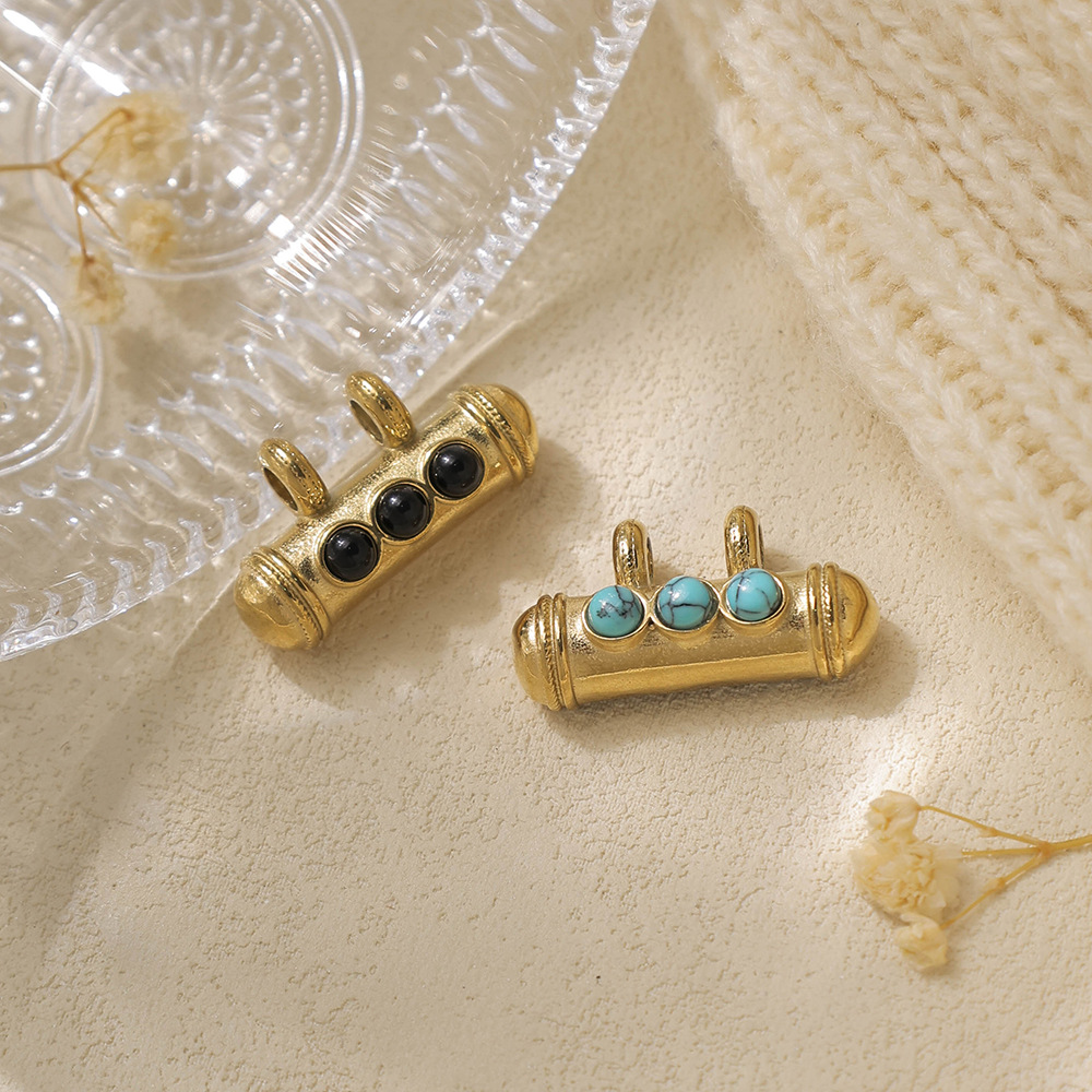 Acier inoxydable 304 Pendentif, avec pierre gemme, tube, Placage de couleur d'or, DIY & double trou, plus de couleurs à choisir, protéger l'environnement, sans nickel, plomb et cadmium, 10PC/sac, Vendu par sac