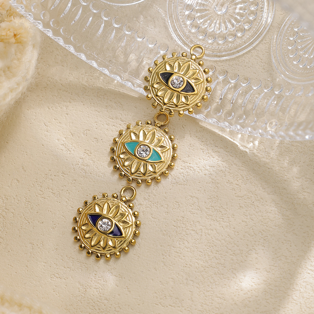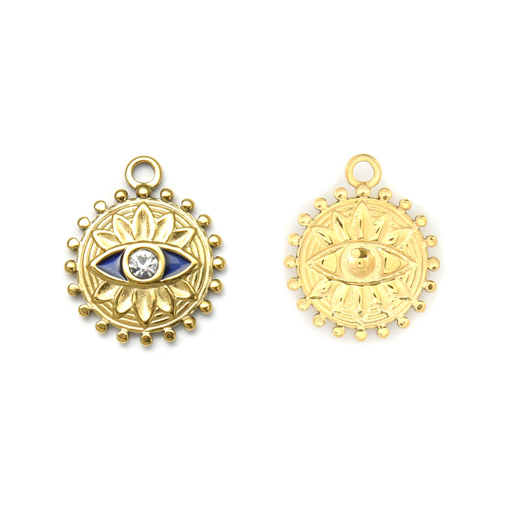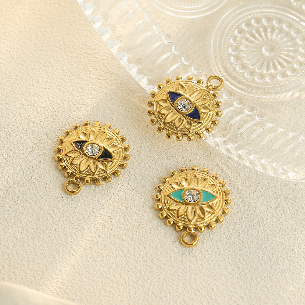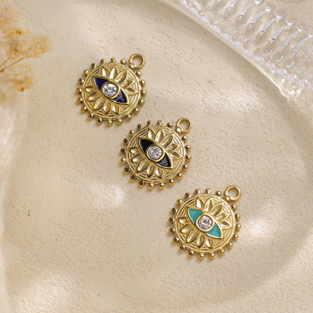 Acier inoxydable 304 Pendentif, Rond, Placage de couleur d'or, DIY & émail & avec strass, plus de couleurs à choisir, protéger l'environnement, sans nickel, plomb et cadmium, 10PC/sac, Vendu par sac