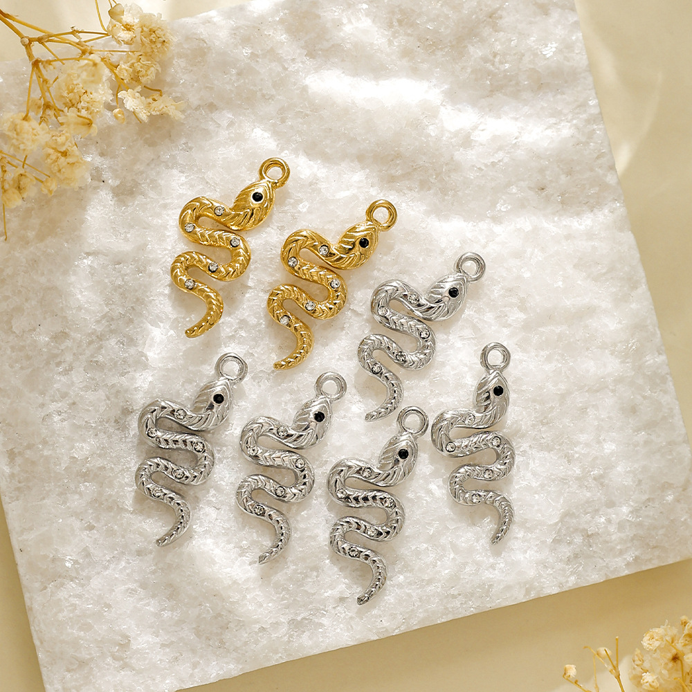 Acier inoxydable 304 Pendentif, serpent, Placage, DIY & pavé de micro zircon, plus de couleurs à choisir, 10PC/sac, Vendu par sac