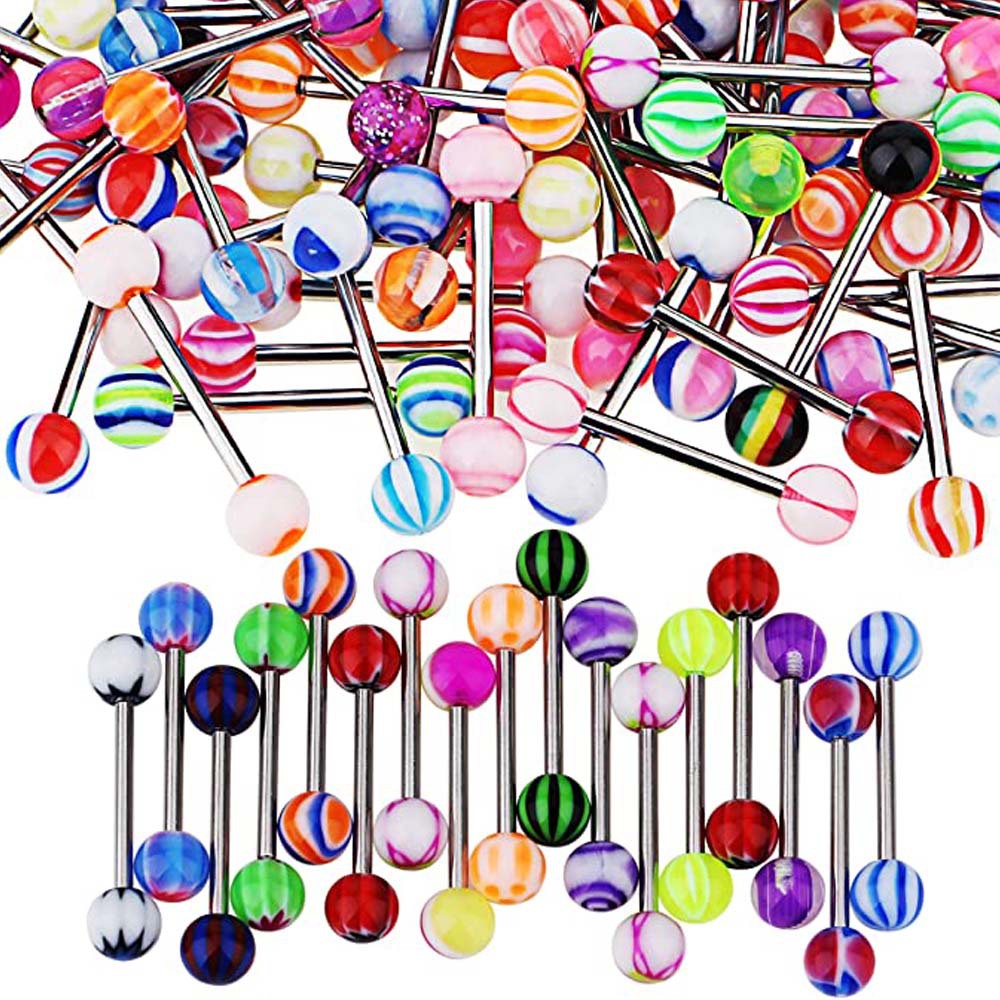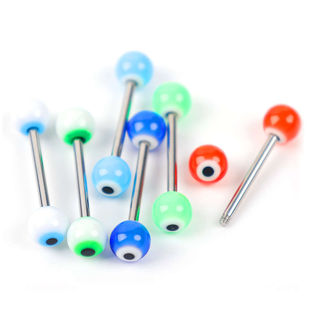 Acier inoxydable 304 anneau de langue, avec Acrylique, Rond, quantité différente pour le choix & unisexe, Couleur aléatoire, tongue ring length 11-16mm, Vendu par sac