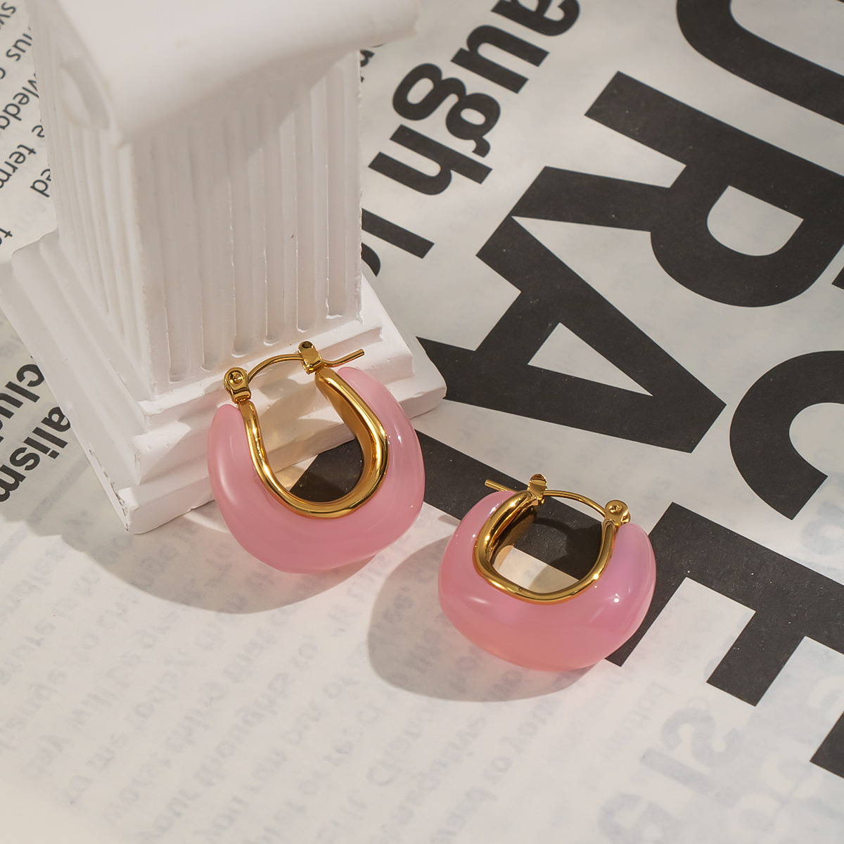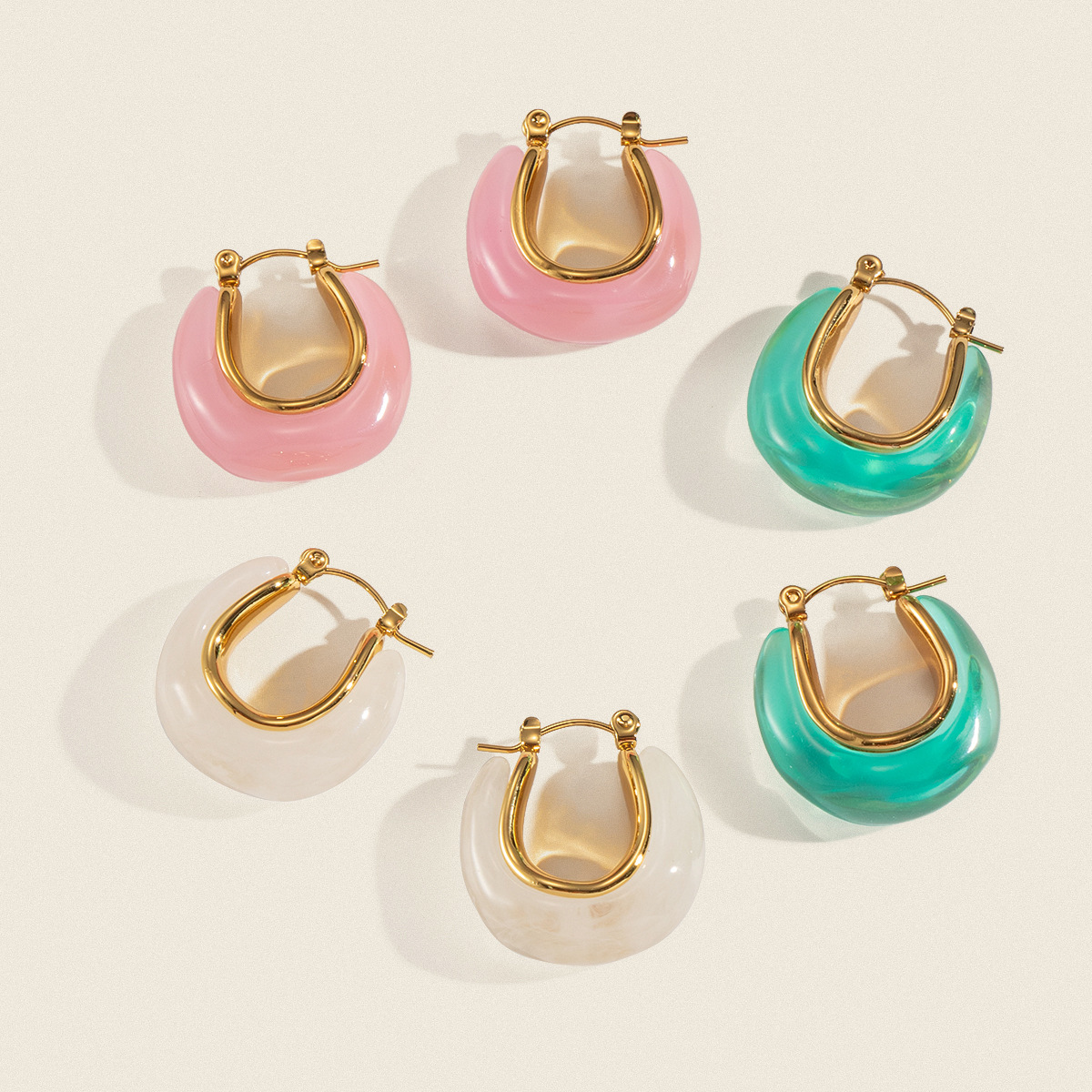 Boucle d'oreille résine, Acier inoxydable 304, avec résine, Plaqué or 18K, bijoux de mode & pour femme, plus de couleurs à choisir, Vendu par paire