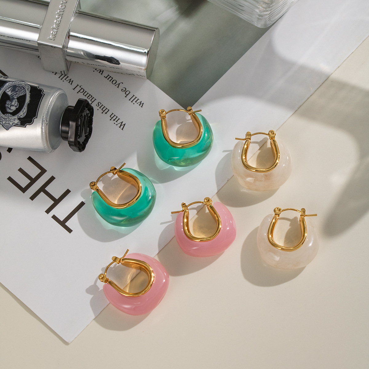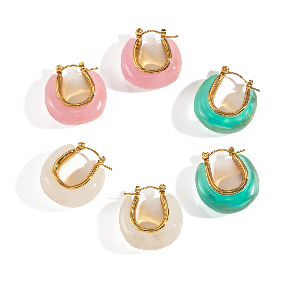 Boucle d'oreille résine, Acier inoxydable 304, avec résine, Placage de couleur d'or, bijoux de mode & pour femme, plus de couleurs à choisir, Vendu par paire