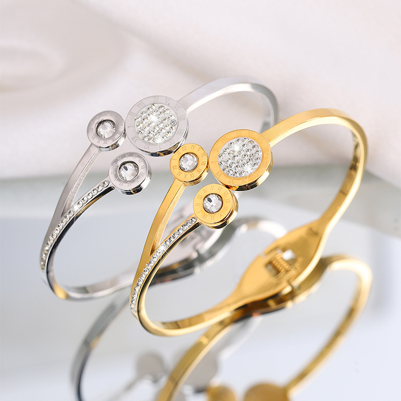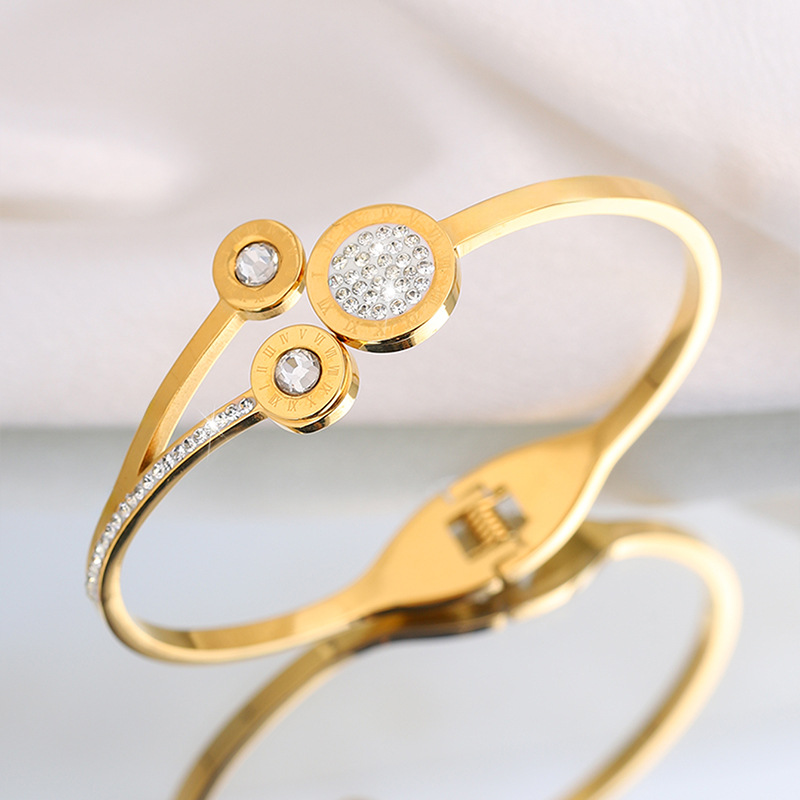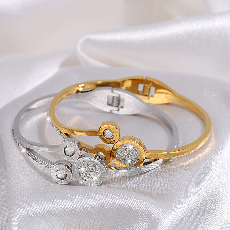 Bracelet en acier inoxydable, Acier inoxydable 304, Plaqué or 18K, styles différents pour le choix & pour femme & avec strass, Vendu par PC