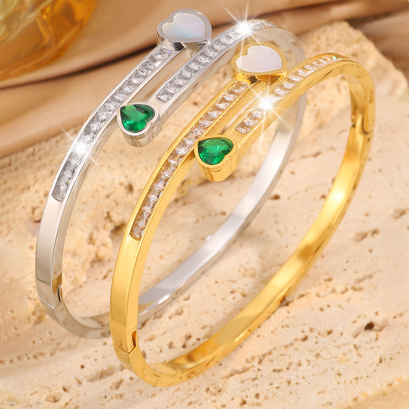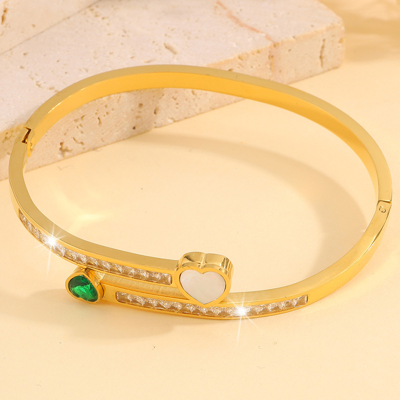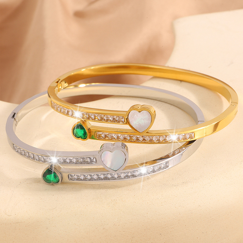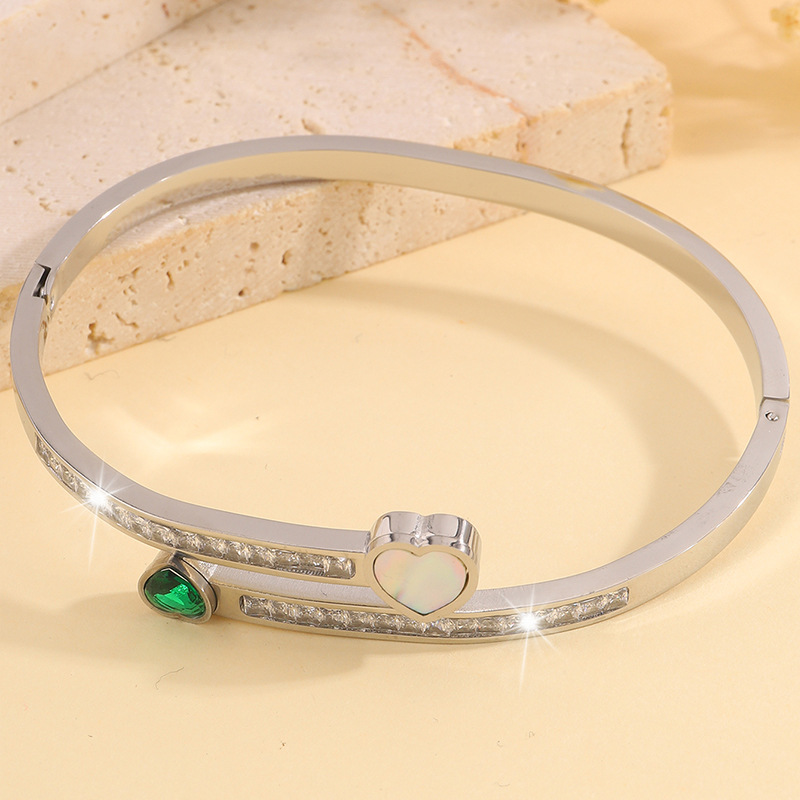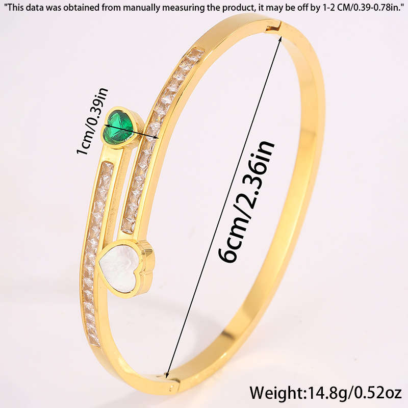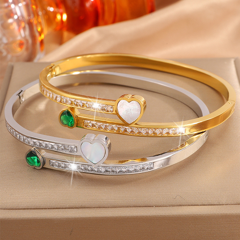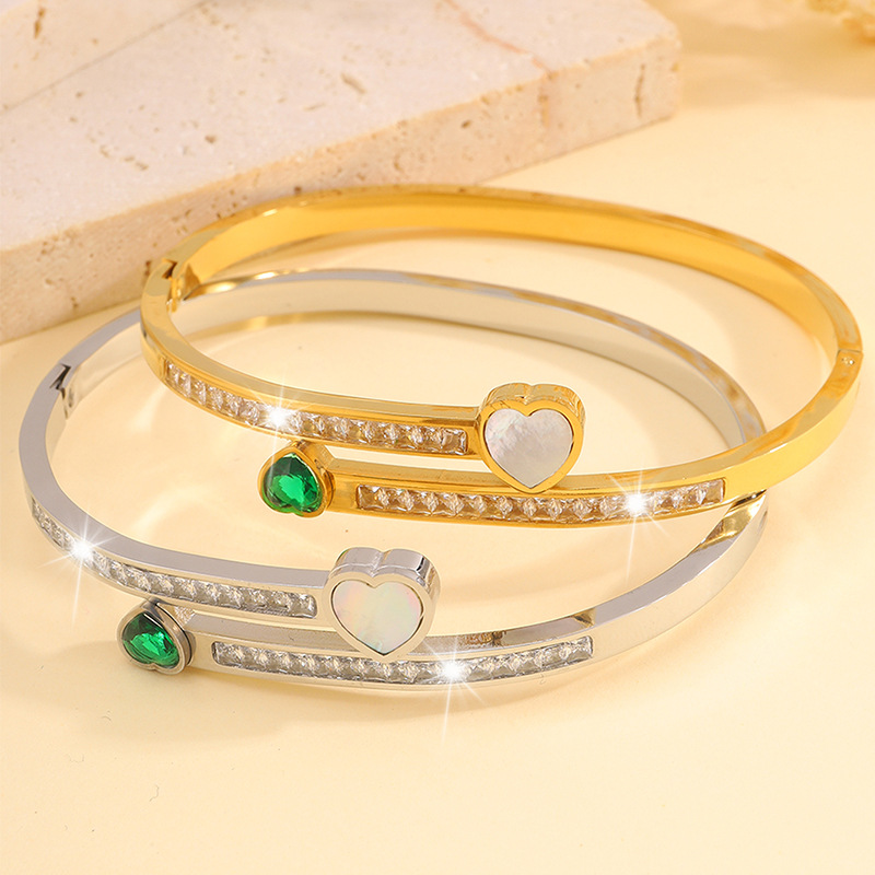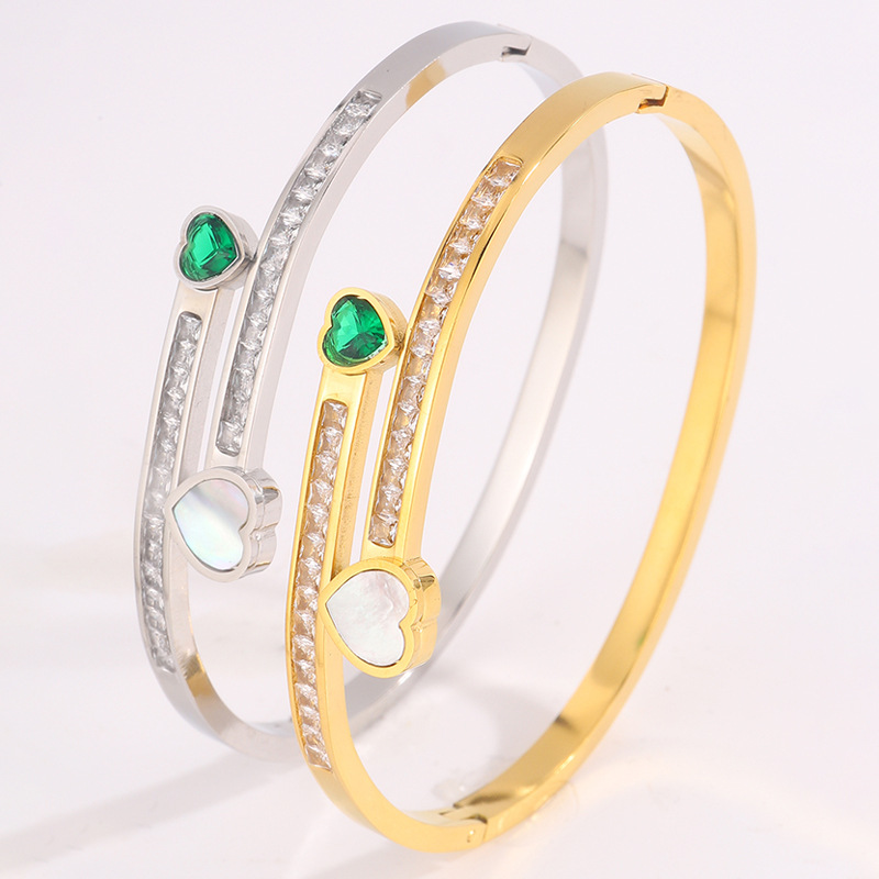 Acier inoxydable 304 bracelet manchette, avec coquille blanche, Placage, bijoux de mode & pavé de micro zircon & pour femme, plus de couleurs à choisir, Vendu par PC