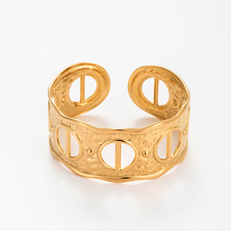 Acier inoxydable 304 bracelet manchette, Placage, styles différents pour le choix & pour femme & creux, doré, Vendu par PC