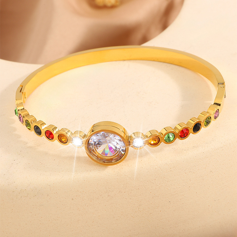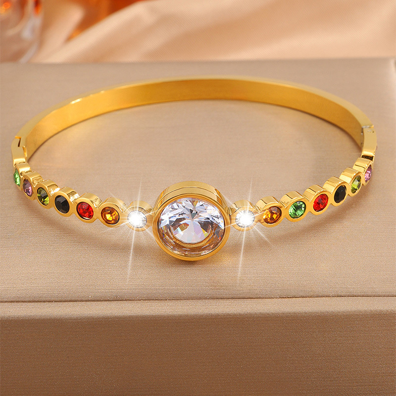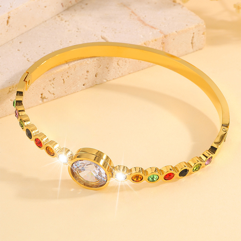 Bracelet en acier inoxydable, Acier inoxydable 304, Placage de couleur d'or, bijoux de mode & pavé de micro zircon, doré, Vendu par PC