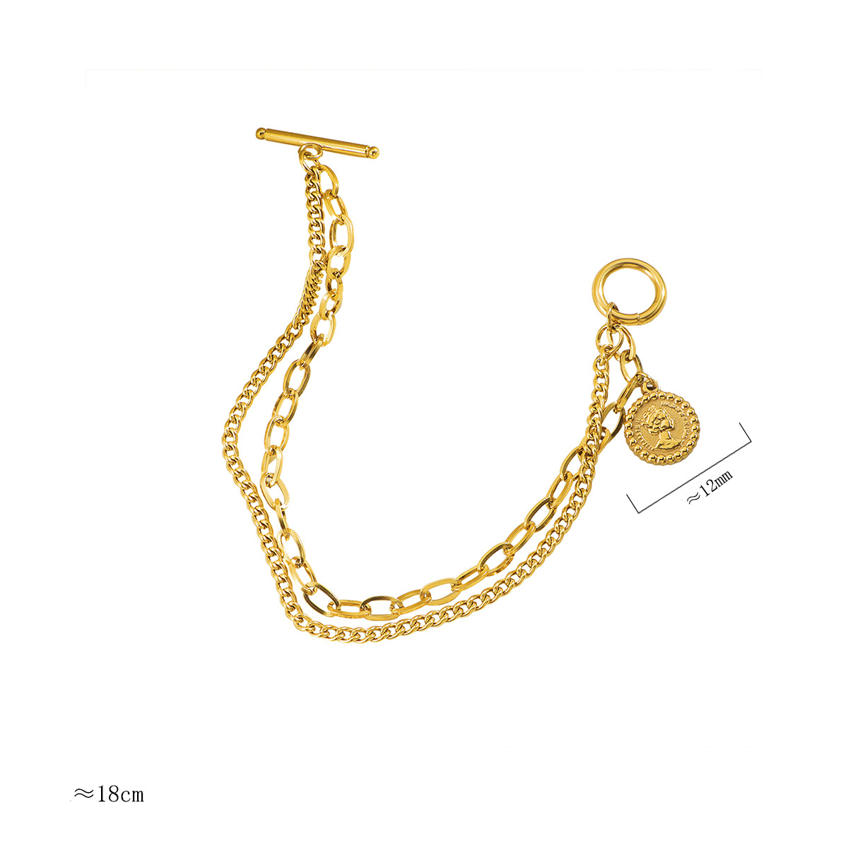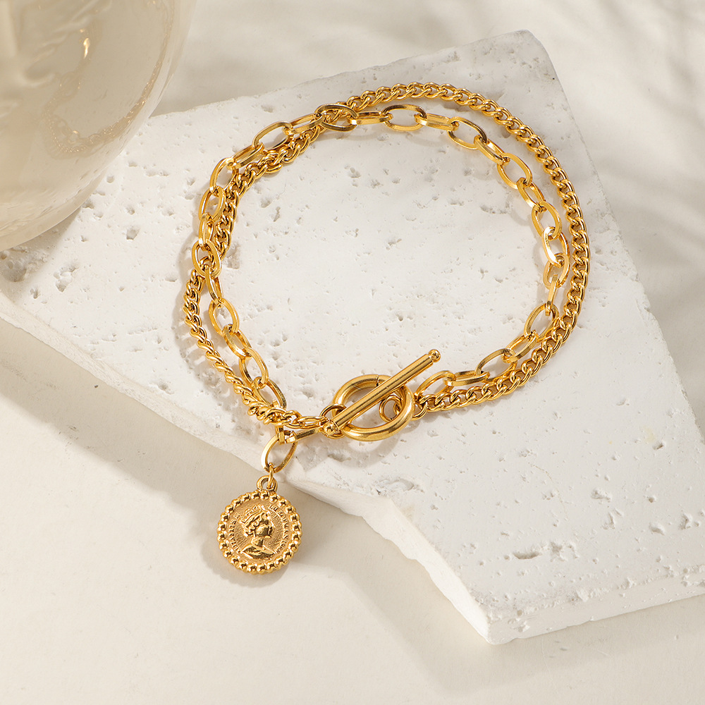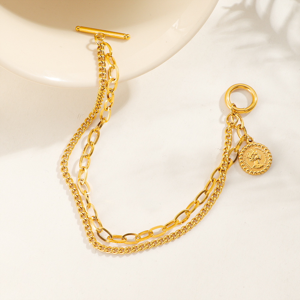 Acier inoxydable 304 bracelet, Placage de couleur d'or, Double couche & pour femme, Longueur Environ 18 cm, Vendu par PC