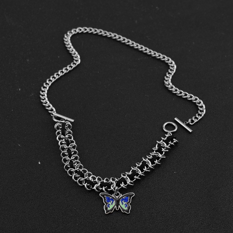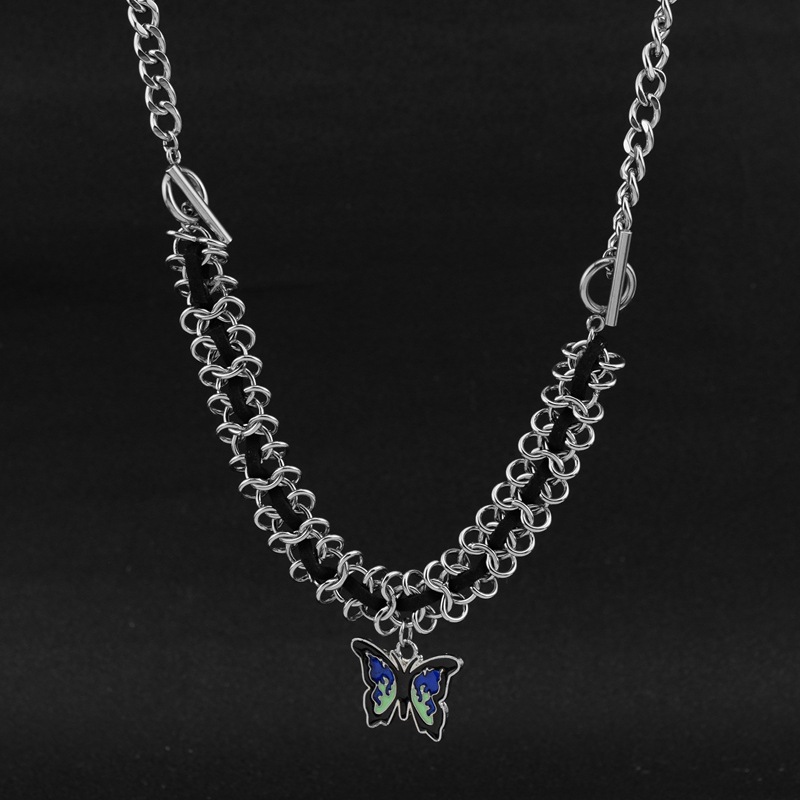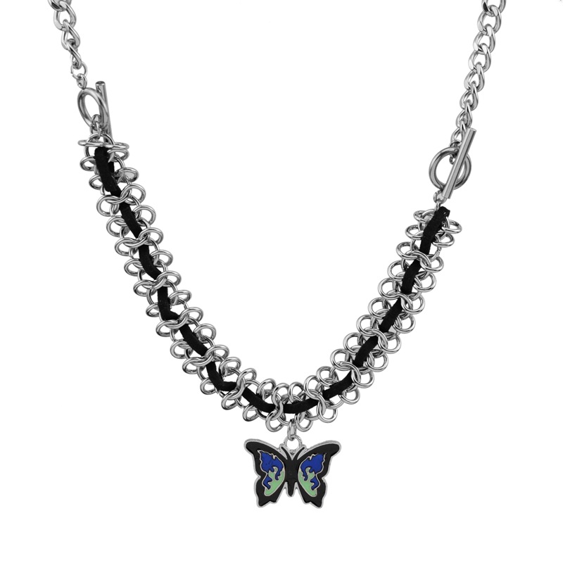 Acier inoxydable 304 collier, avec cuir PU & alliage de zinc, papillon, pour femme & émail, Longueur Environ 19.7 pouce, Vendu par PC