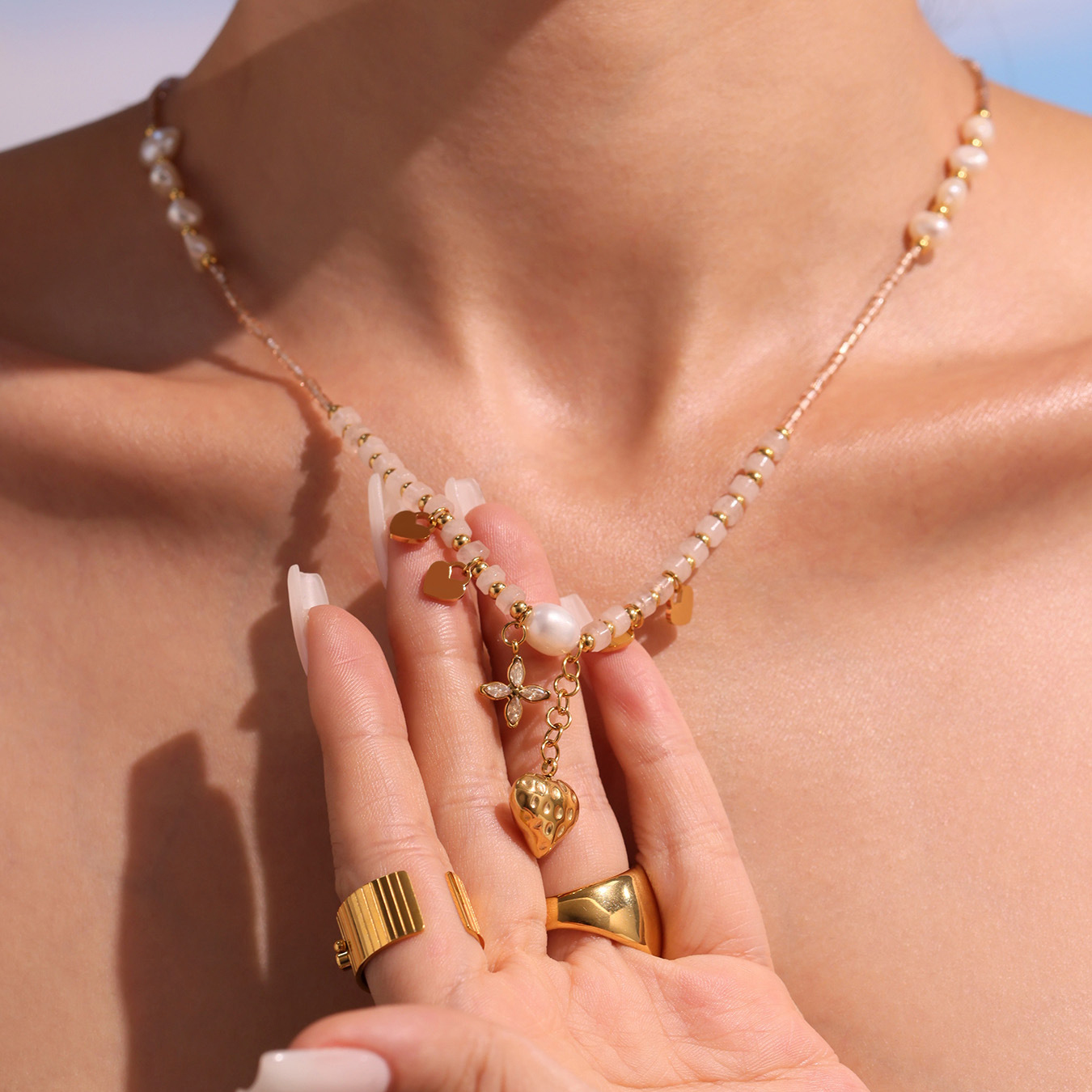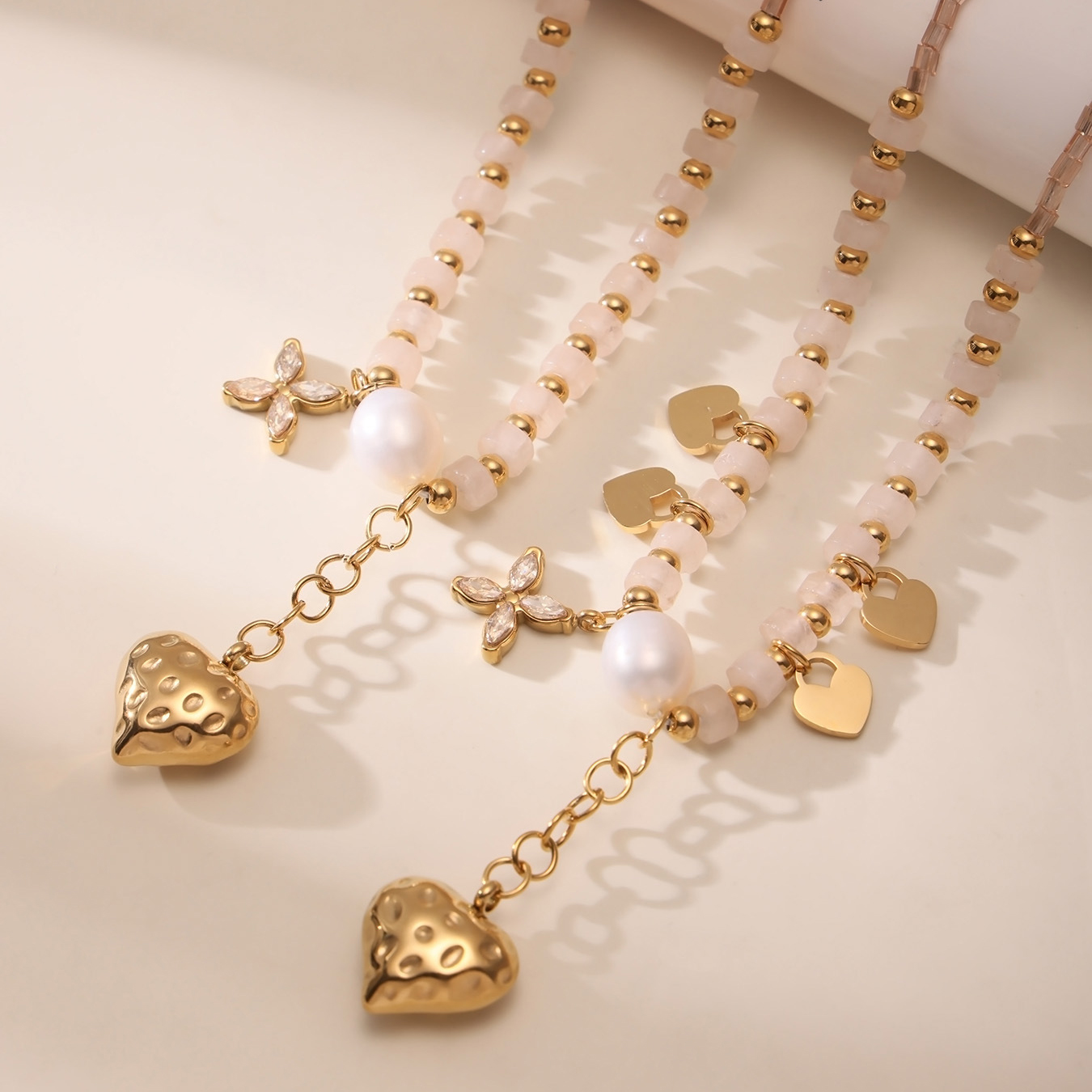 Acier inoxydable 304 collier, avec Pierre naturelle & perle d'eau douce cultivée, Placage, bijoux de mode & pour femme, doré, Vendu par PC