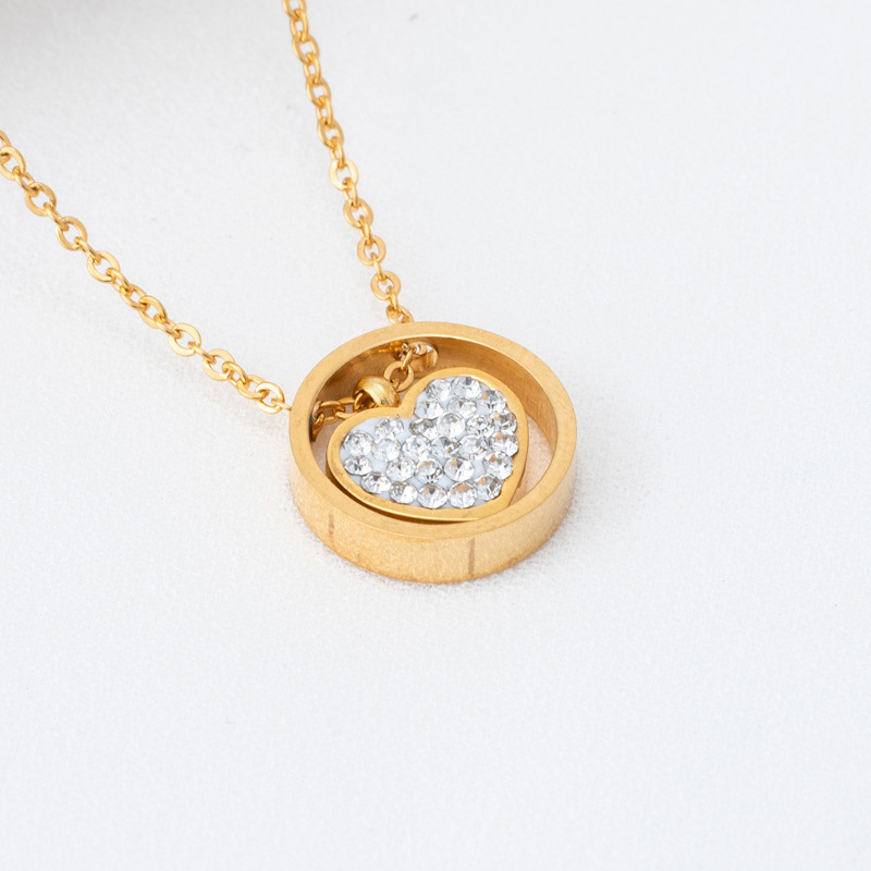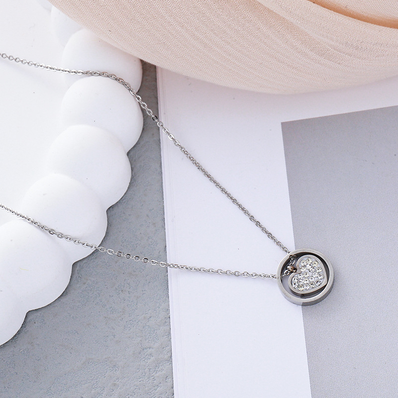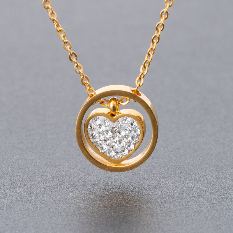 Acier inoxydable 304 collier, coeur, Placage, chaîne ovale & pour femme & avec strass, plus de couleurs à choisir, Longueur Environ 16-20 pouce, Vendu par PC