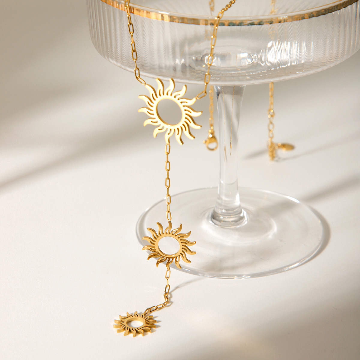 Acier inoxydable 304 collier, avec 5cm chaînes de rallonge, fleur, Placage de couleur d'or, pour femme, Longueur Environ 45 cm, Vendu par PC