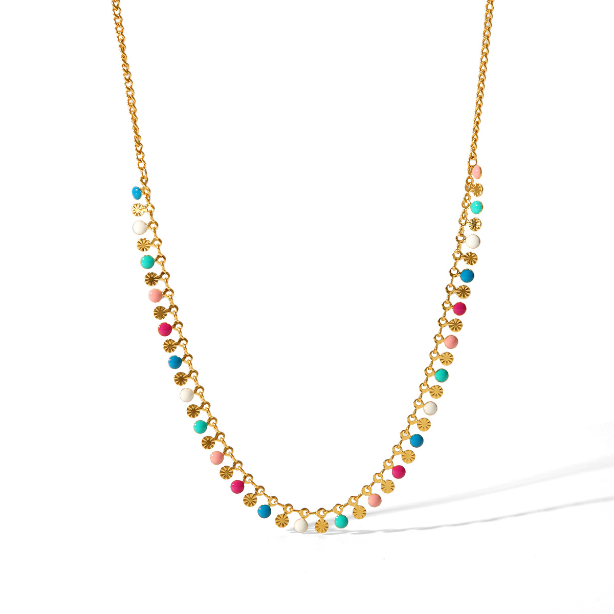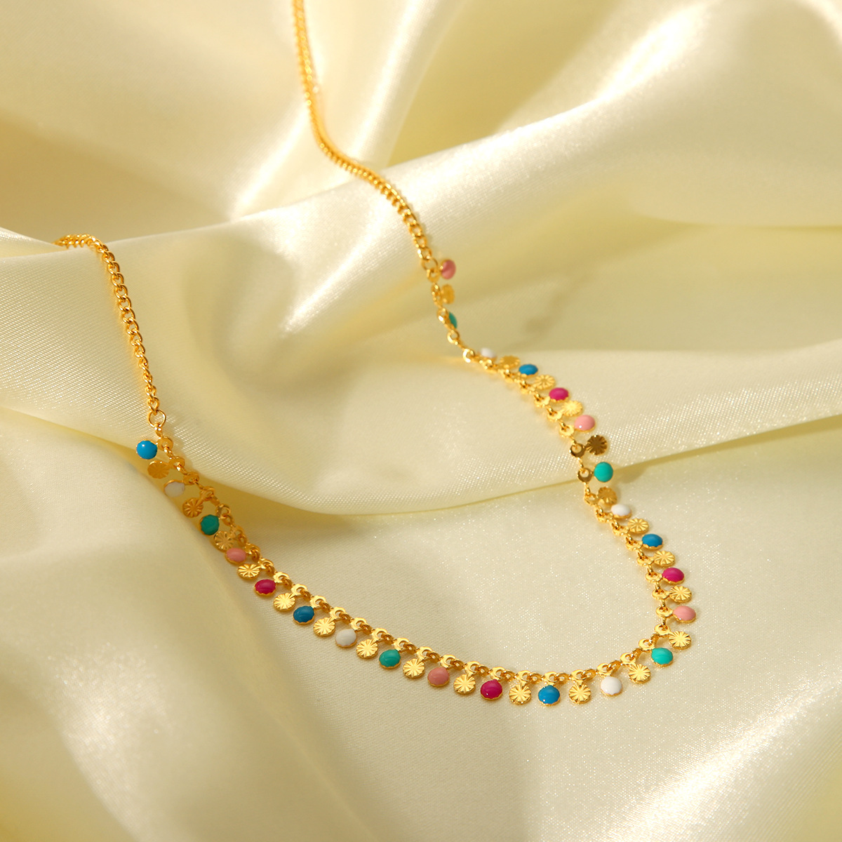 Acier inoxydable 304 collier, avec 5cm chaînes de rallonge, Placage de couleur d'or, pour femme & émail, Longueur Environ 40 cm, Vendu par PC