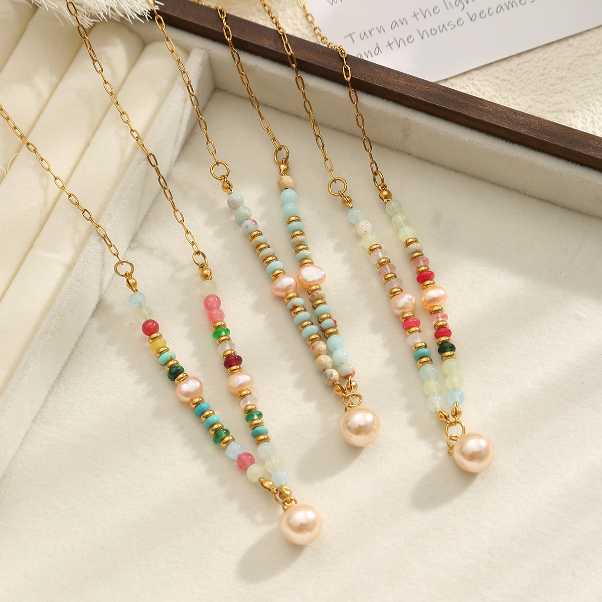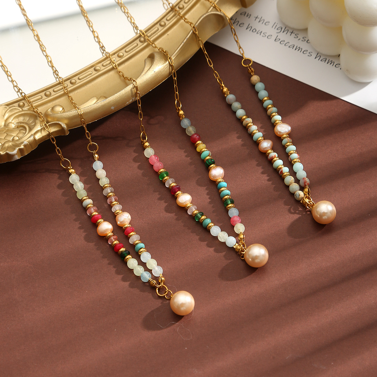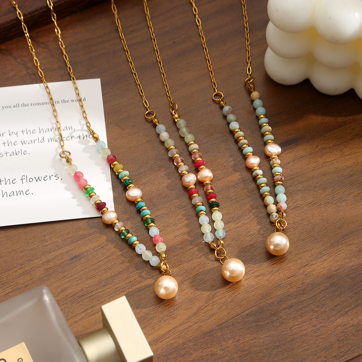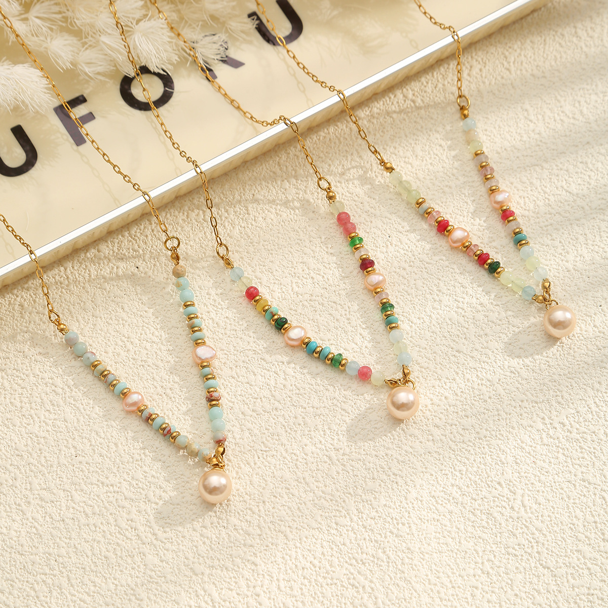 Acier inoxydable 304 collier, avec verre & perle de plastique, avec 5cm chaînes de rallonge, Placage de couleur d'or, bijoux de mode & pour femme, plus de couleurs à choisir, Longueur Environ 45 cm, Vendu par PC