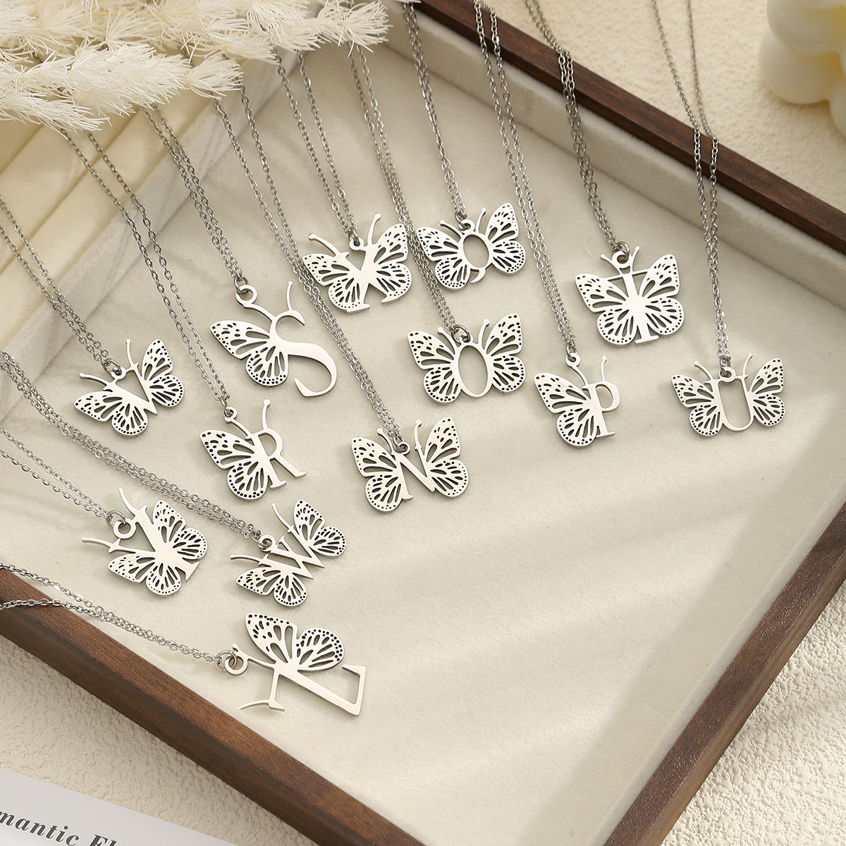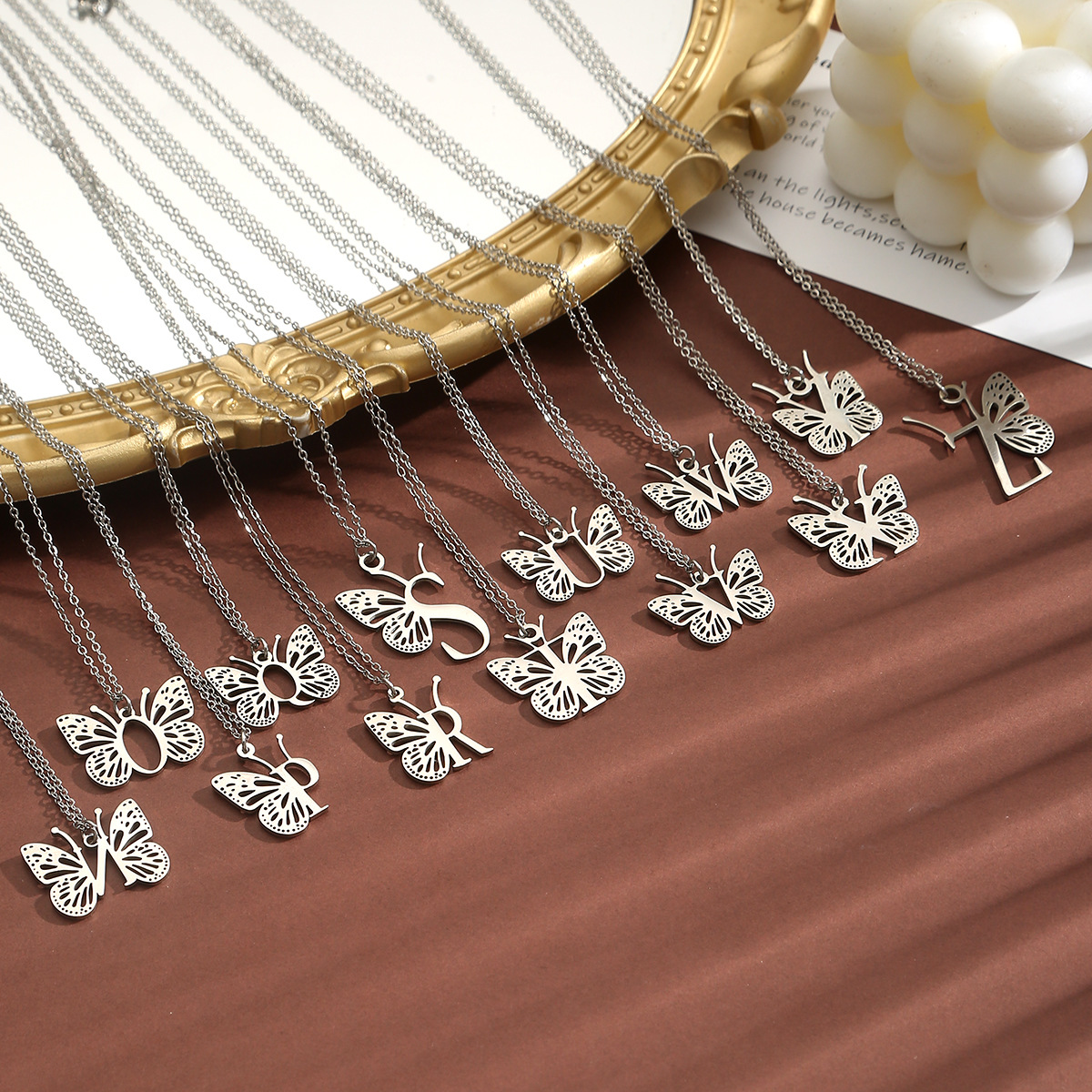 Acier inoxydable 304 collier, avec 5cm chaînes de rallonge, papillon, unisexe & styles différents pour le choix & avec le motif de lettre, couleur originale, Longueur Environ 45 cm, Vendu par PC