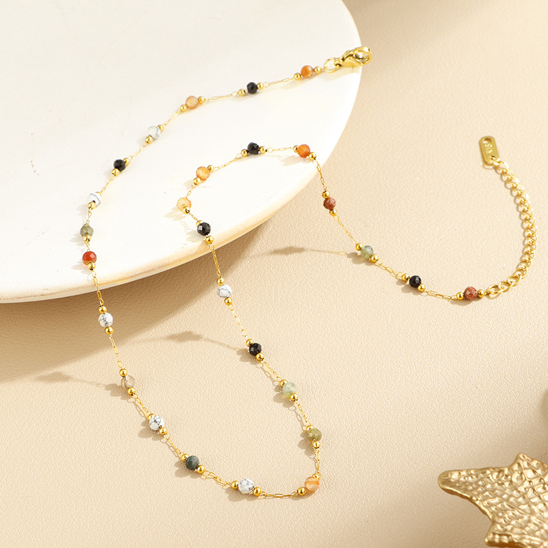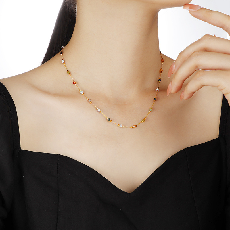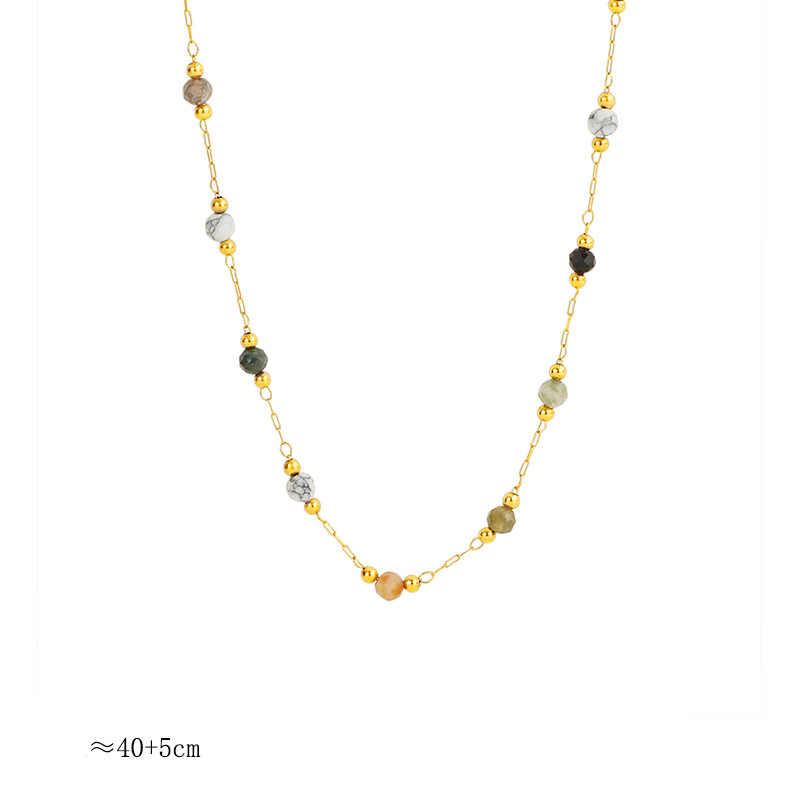 Acier inoxydable 304 collier, avec pierre gemme, avec 5cm chaînes de rallonge, Placage de couleur d'or, bijoux de mode & pour femme, Longueur Environ 40 cm, Vendu par PC