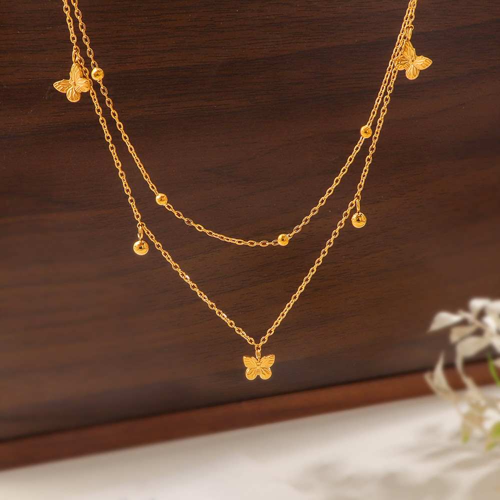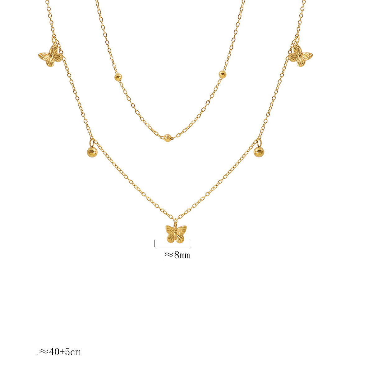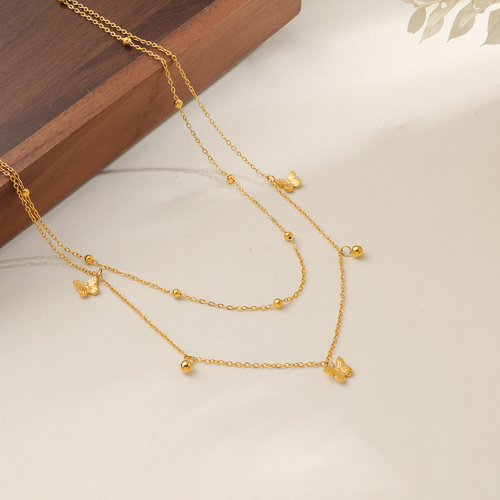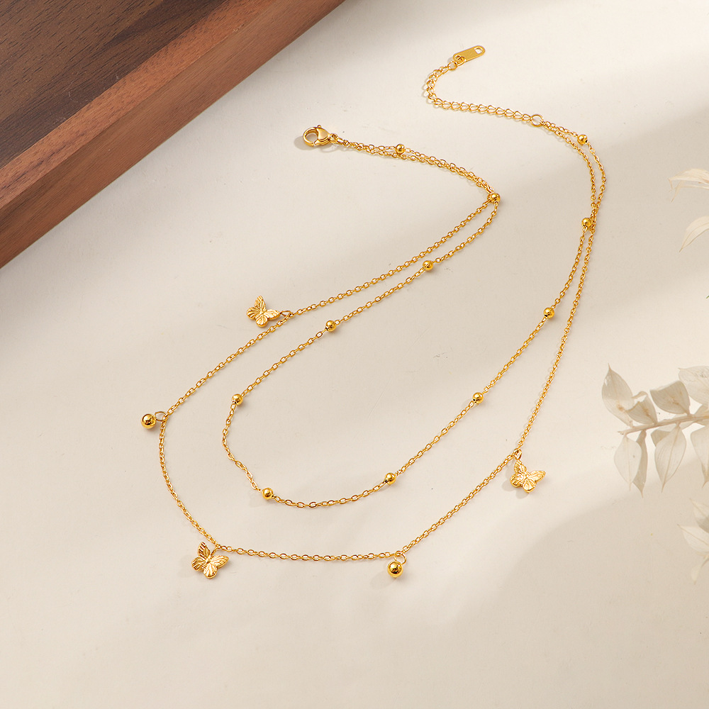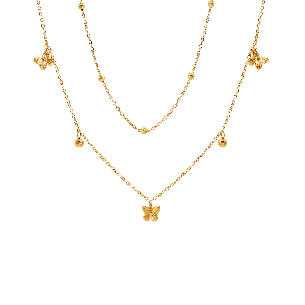 Acier inoxydable 304 collier, avec 5cm chaînes de rallonge, papillon, Placage de couleur d'or, Double couche & pour femme, Longueur Environ 40 cm, Vendu par PC