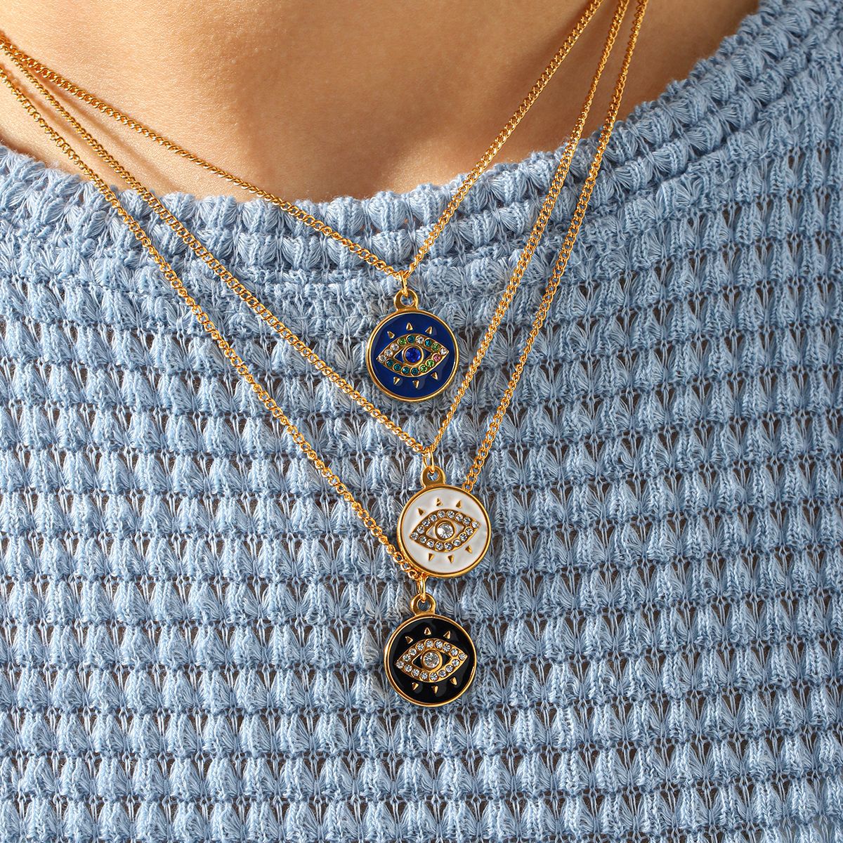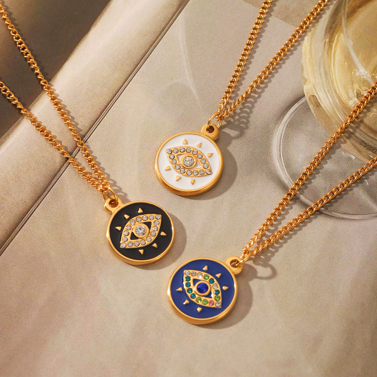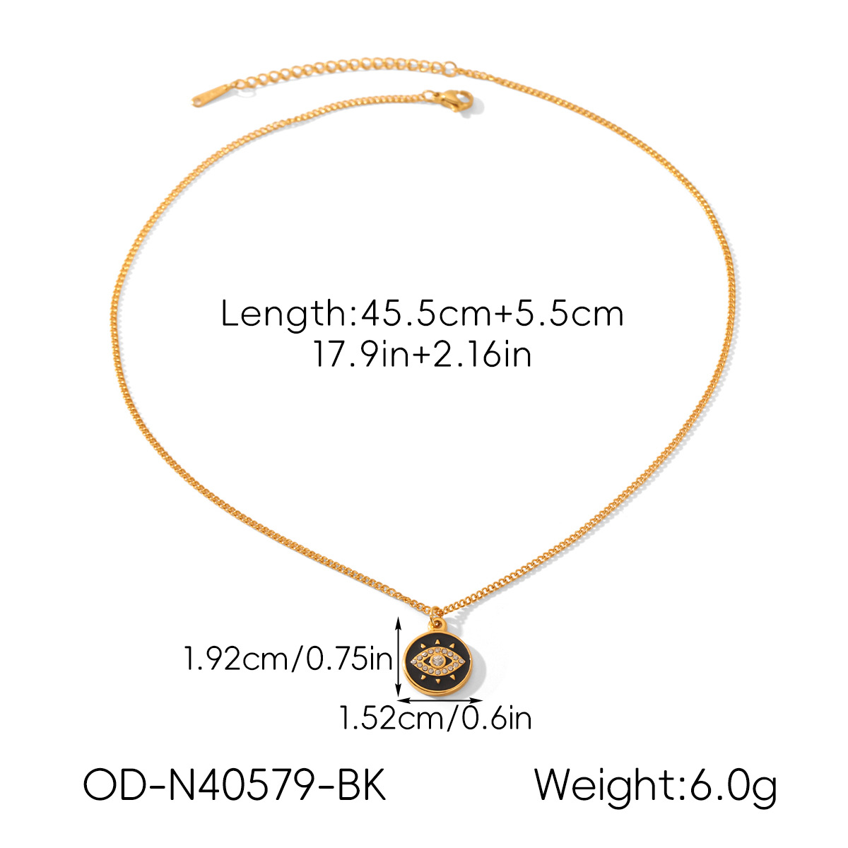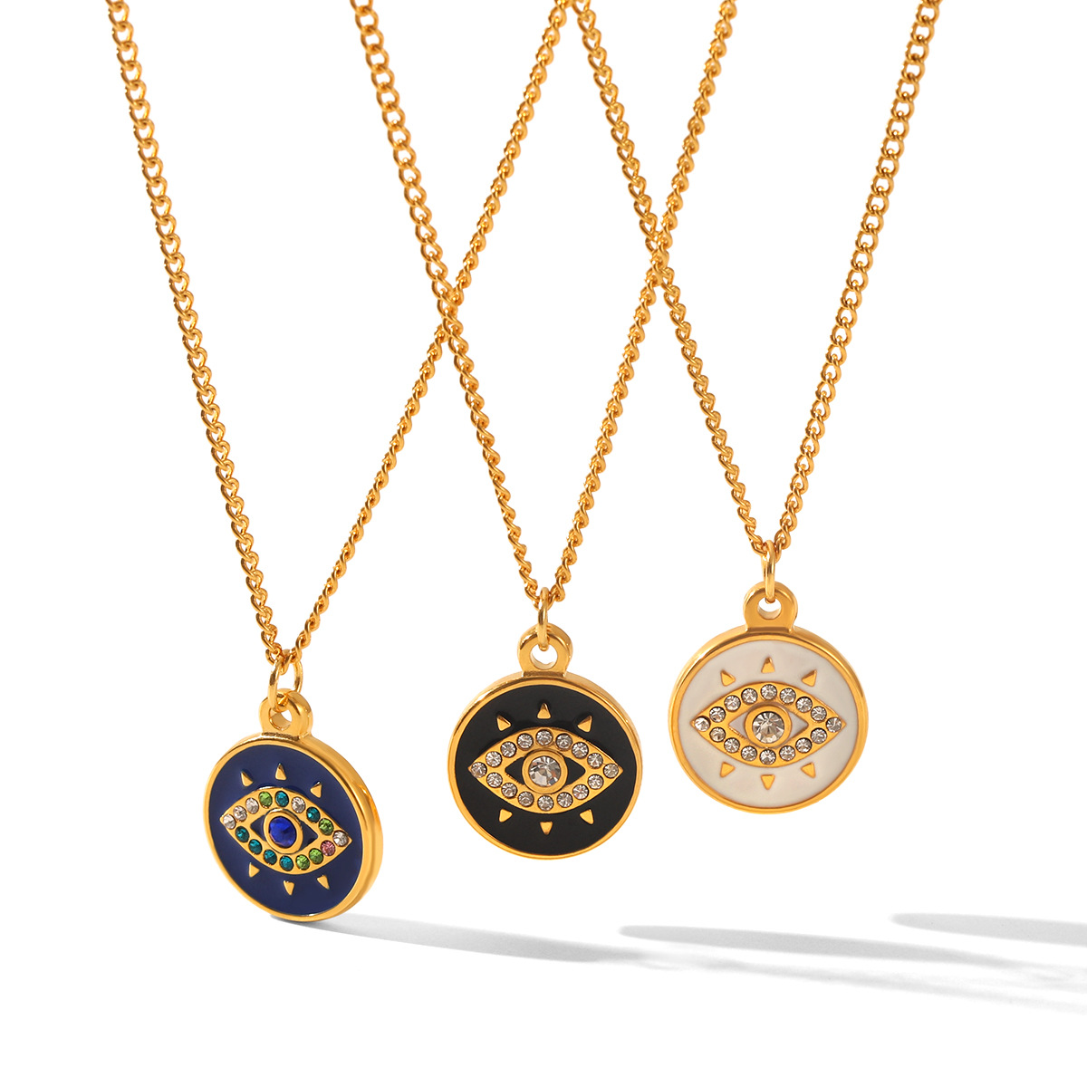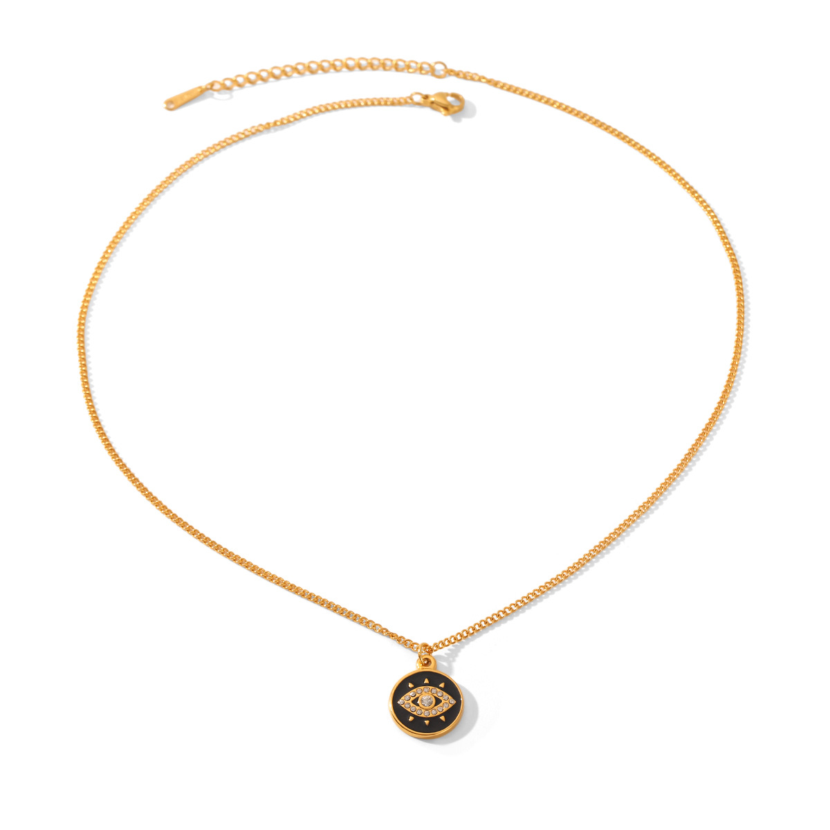 Acier inoxydable 304 collier, avec 5.5cm chaînes de rallonge, Mauvais œil, Placage de couleur d'or, pour femme & émail & avec strass, plus de couleurs à choisir, Longueur Environ 45.5 cm, Vendu par PC