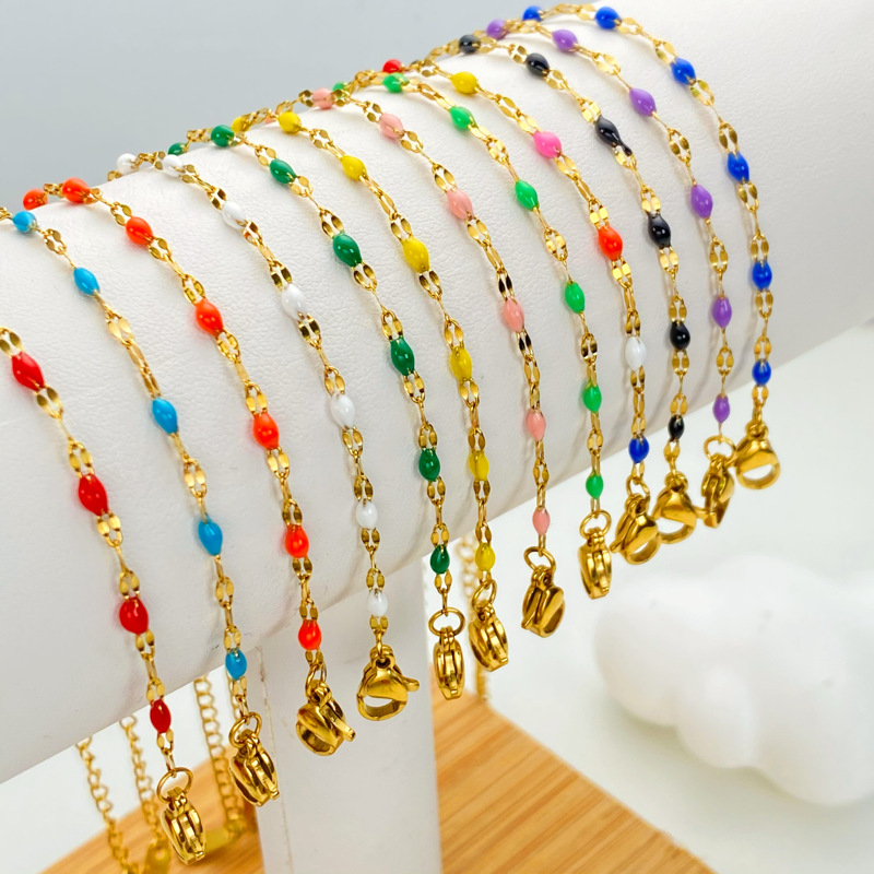 Acier inoxydable 304 collier, avec 5cm chaînes de rallonge, Placage de couleur d'or, normes différentes pour le choix & pour femme & émail, plus de couleurs à choisir, Vendu par PC