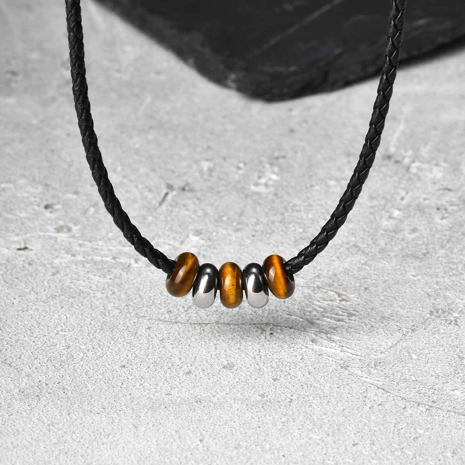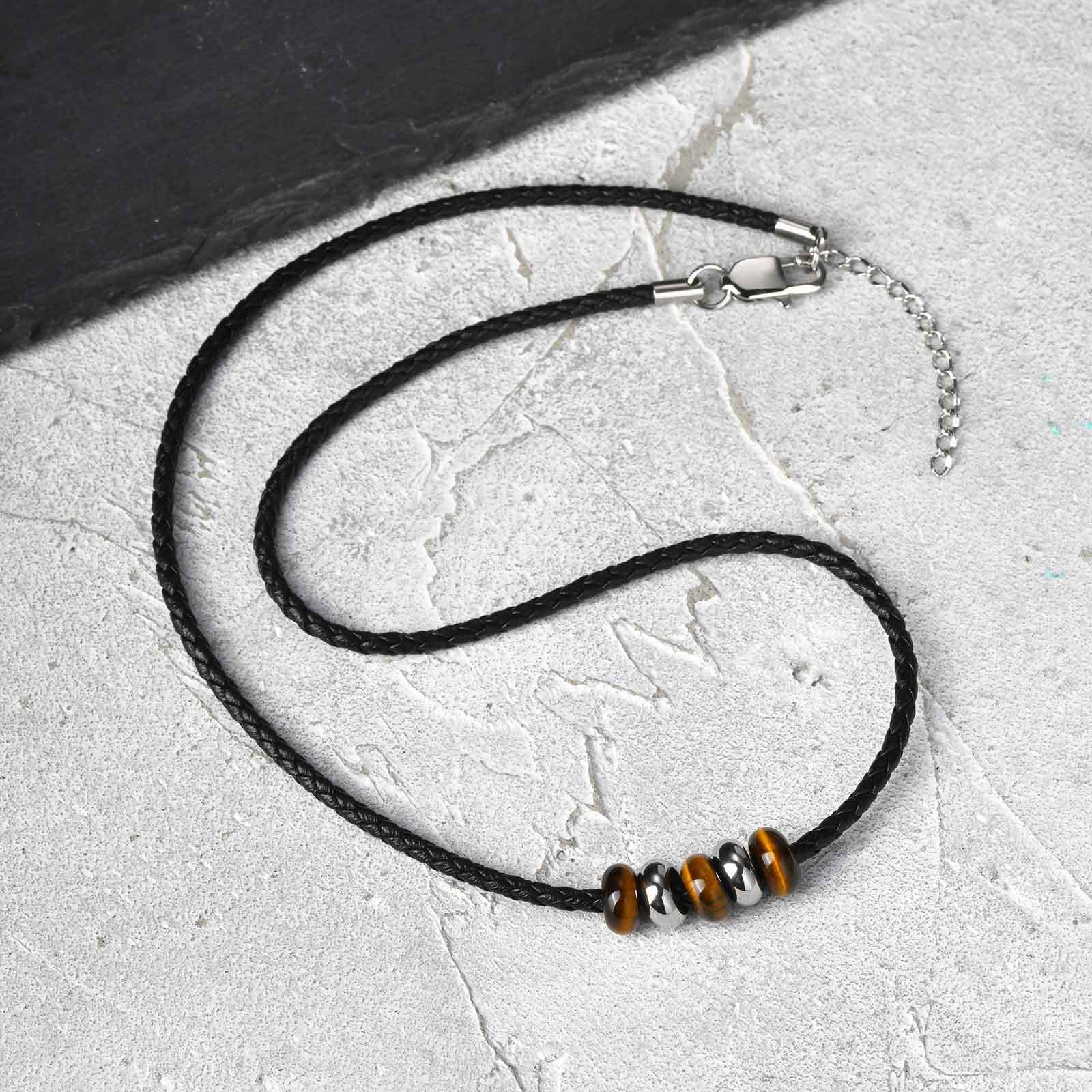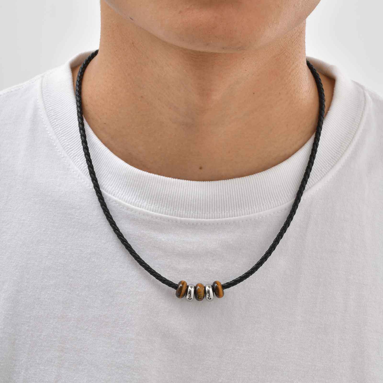 Acier inoxydable 304 collier, avec cuir PU & oeil de tigre, avec 1.97inch chaînes de rallonge, bijoux de mode & unisexe, Longueur Environ 19.69 pouce, Vendu par PC