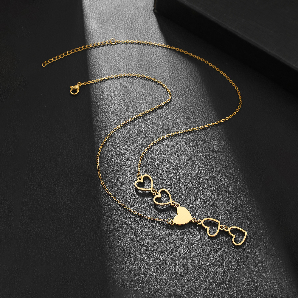Acier inoxydable 304 collier, avec 5cm chaînes de rallonge, coeur, Placage de couleur d'or, pour femme & creux, Longueur Environ 46 cm, Vendu par PC