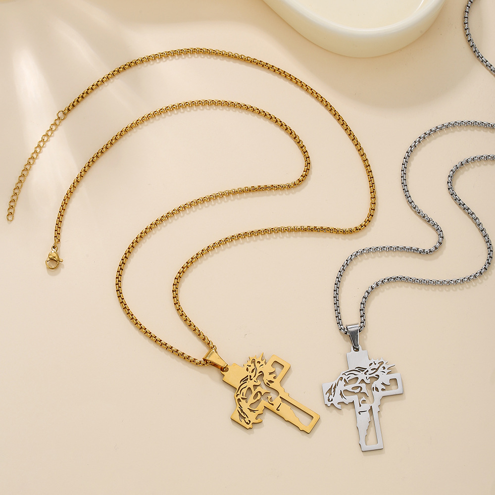 Acier inoxydable 304 collier, avec 5cm chaînes de rallonge, croix, unisexe & styles différents pour le choix, Longueur Environ 45 cm, Vendu par PC