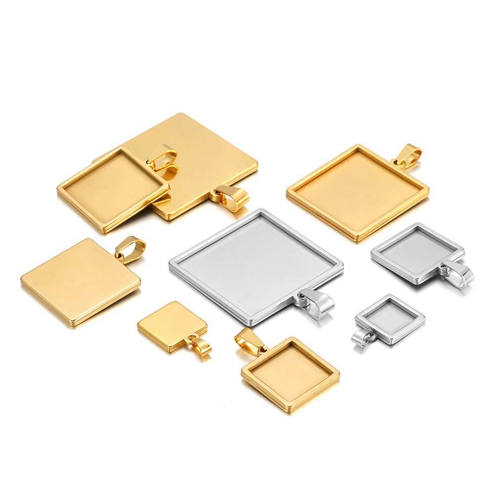Acier inoxydable 304 réglage de pendentif cabochon, Placage de couleur d'or, DIY, plus de couleurs à choisir, 5PC/sac, Vendu par sac