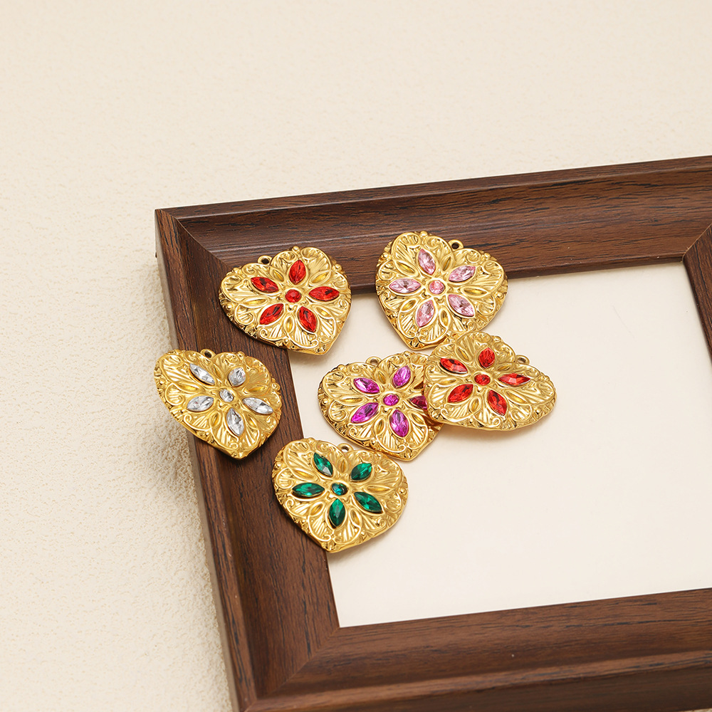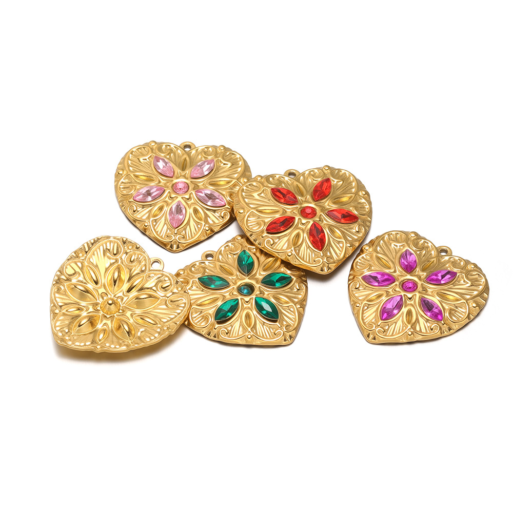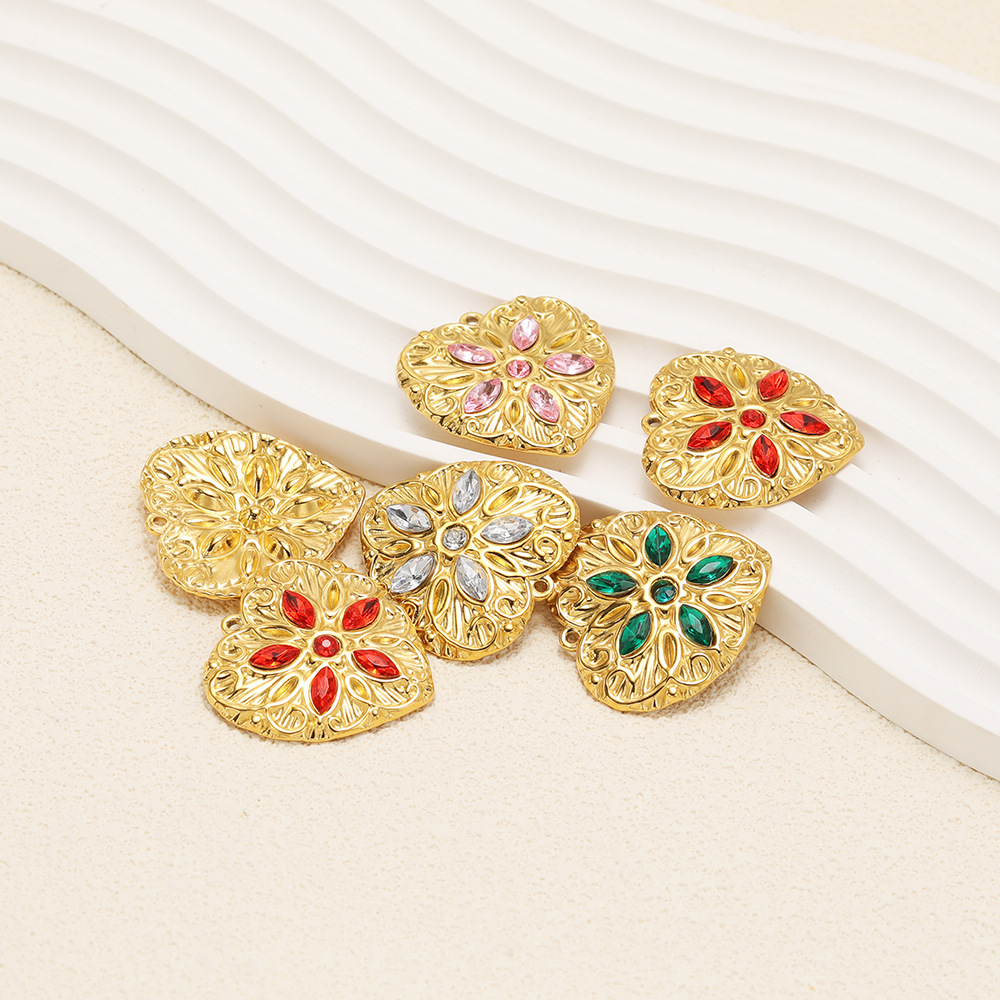 Acier inoxydable Coeur Pendentifs, Acier inoxydable 304, Placage de couleur d'or, DIY & avec strass, plus de couleurs à choisir, 34x34mm, 3PC/sac, Vendu par sac
