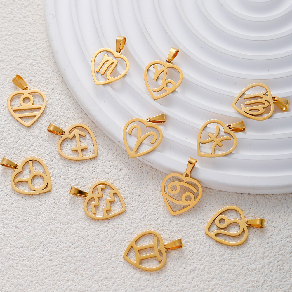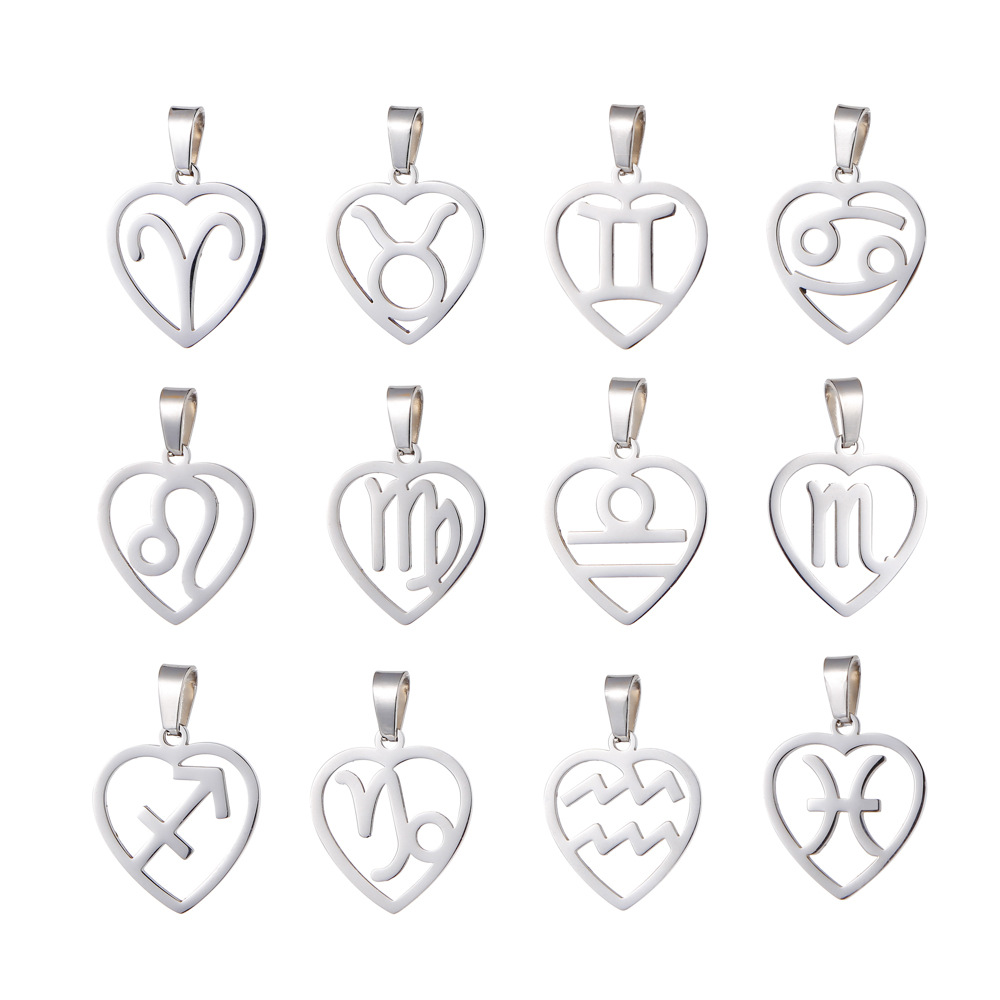 Acier inoxydable Constellation pendentif, Acier inoxydable 304, 12 Signes du Zodiaque, Placage de couleur d'or, DIY, plus de couleurs à choisir, Vendu par PC