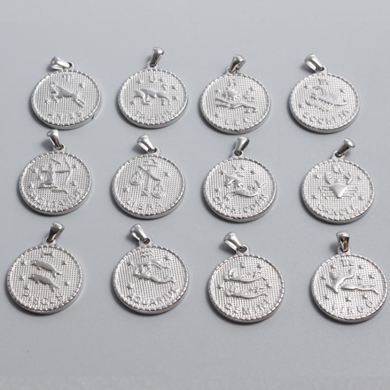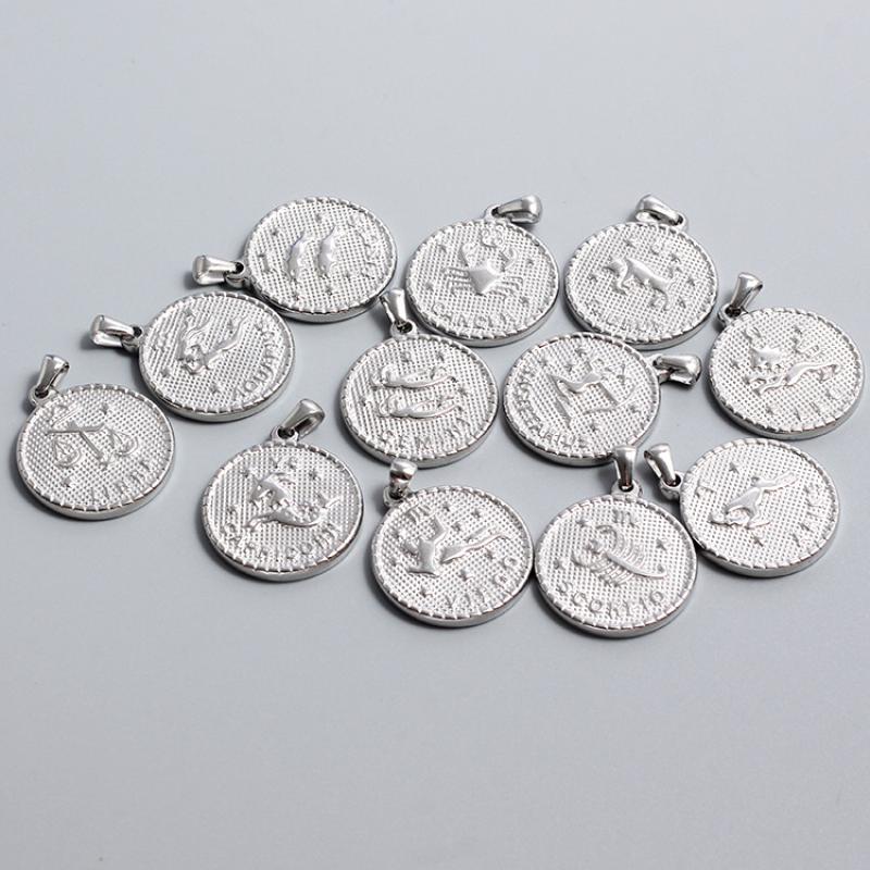 Acier inoxydable Constellation pendentif, Acier inoxydable 304, 12 Signes du Zodiaque, DIY & modèles différents pour le choix, couleur originale, 25x25x3mm, Vendu par PC