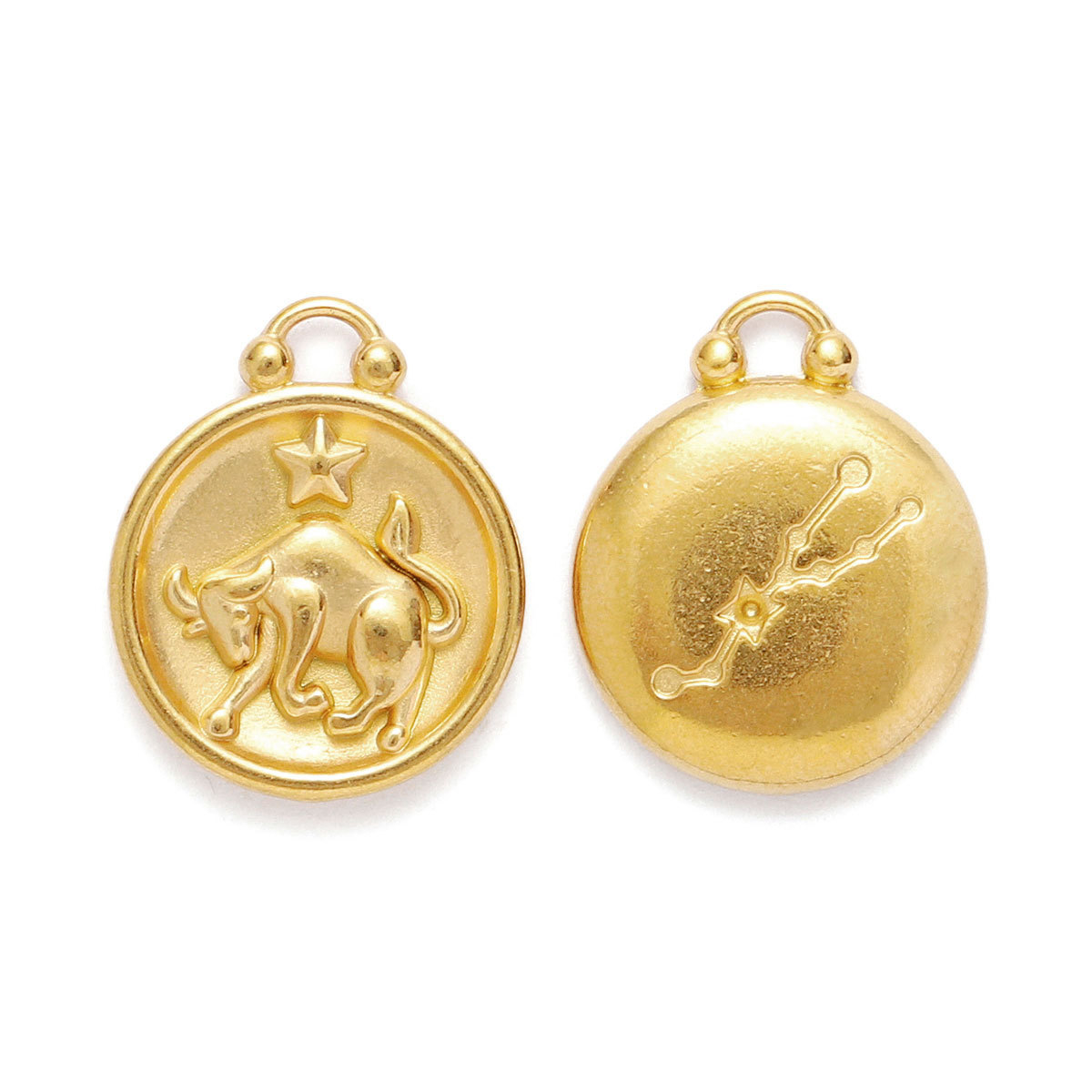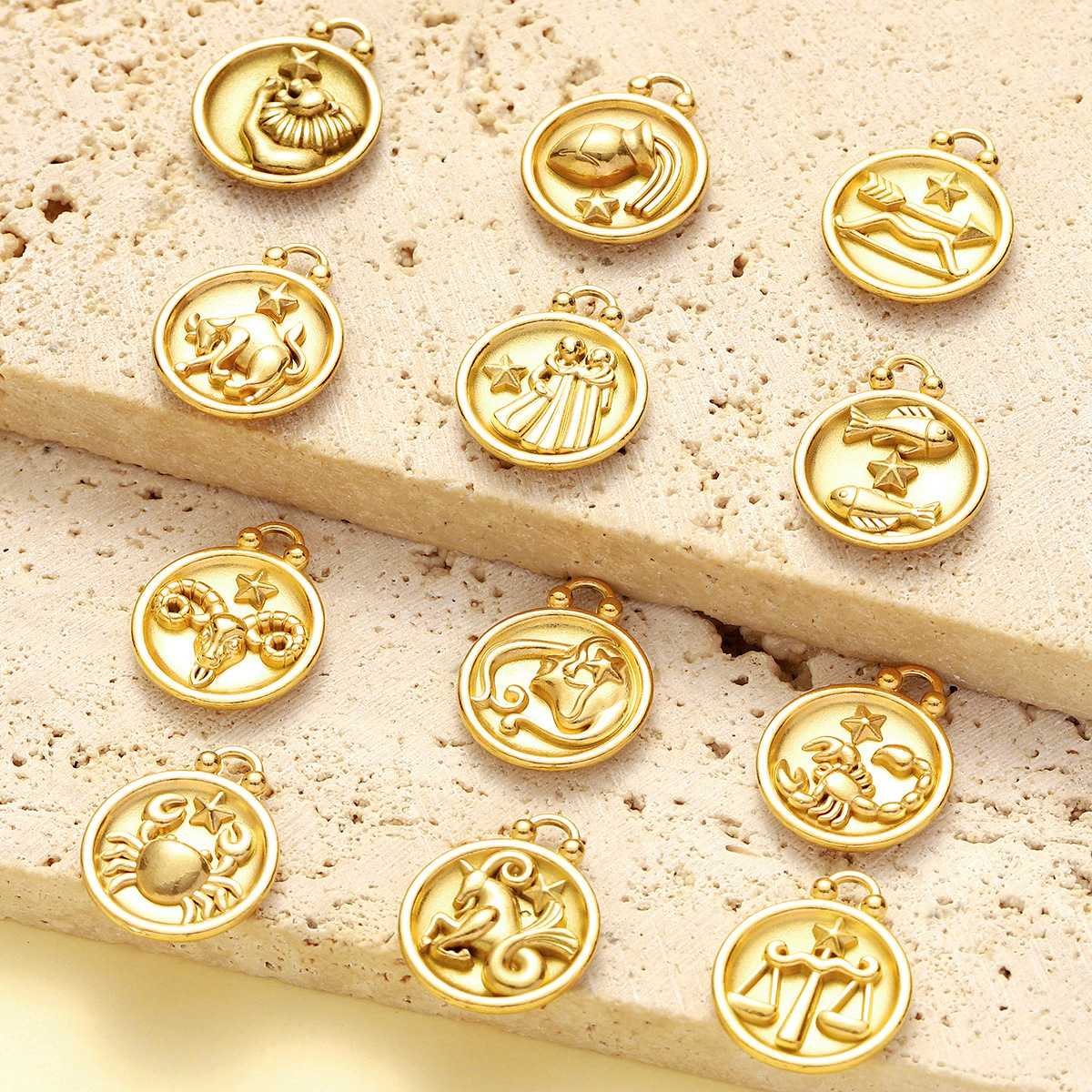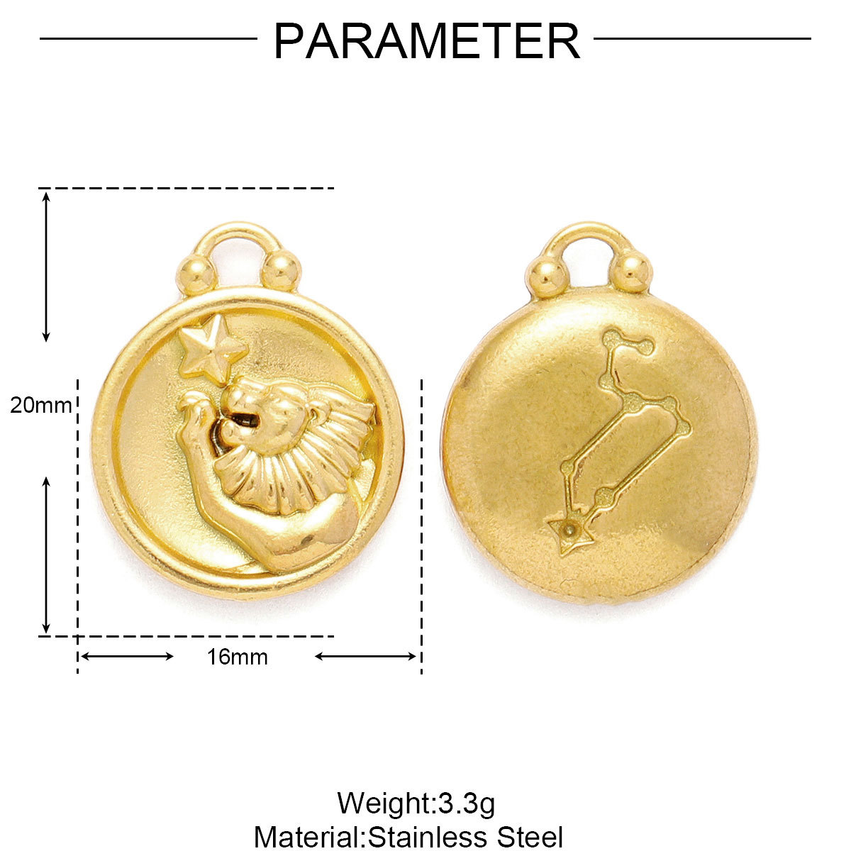 Acier inoxydable Constellation pendentif, Acier inoxydable 304, 12 Signes du Zodiaque, Placage de couleur d'or, DIY & modèles différents pour le choix, 16x20mm, 5PC/sac, Vendu par sac