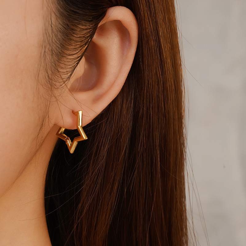 1:Hydraulic five-pointed star gold earrings2:Hydraulic five-pointed star steel color