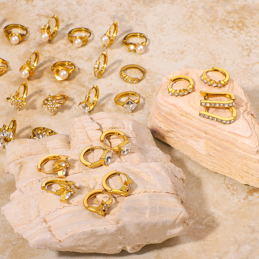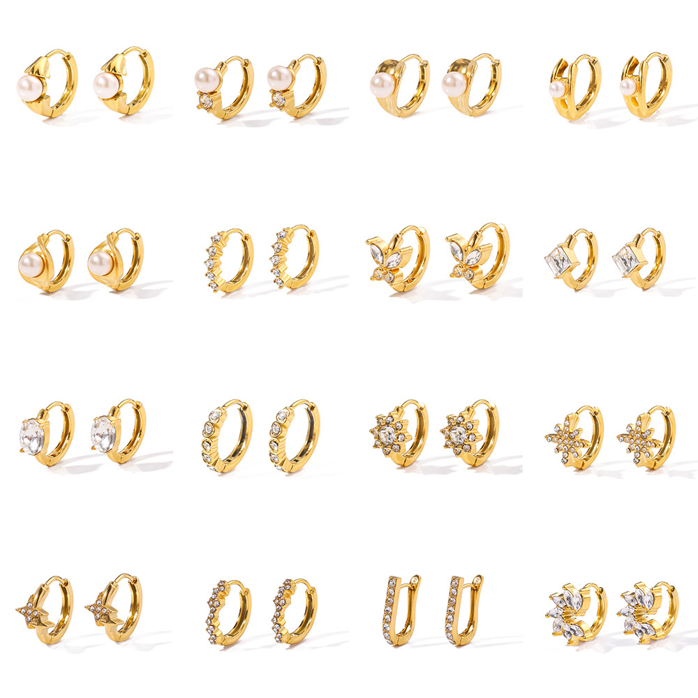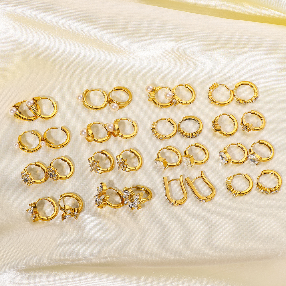 Acier inoxydable Levier Retour Earring, Acier inoxydable 304, avec zircon cubique & perle de plastique, Plaqué or 18K, bijoux de mode & styles différents pour le choix & pour femme, Vendu par paire